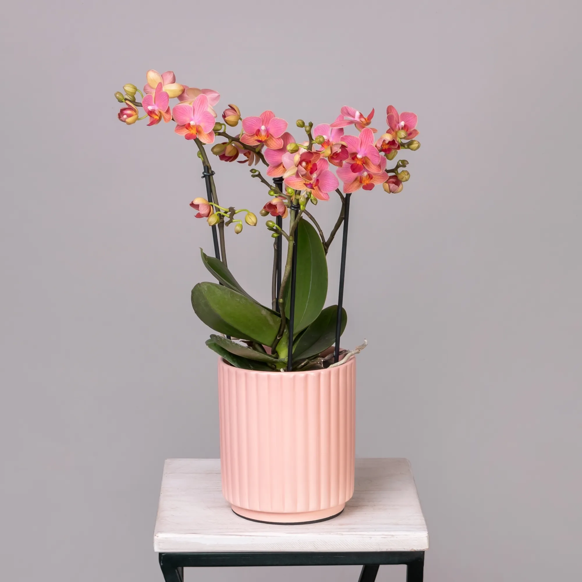 Как правило, растения доставляются в техническом пластиковом горшке от поставщика. Если в наименовании указано «в керамике/цинке», то в эту стоимость входит декоративное кашпо.
