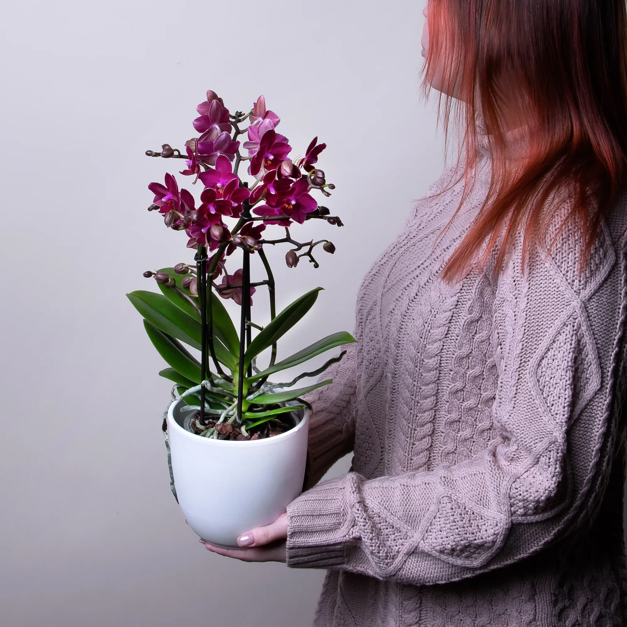 Как правило, растения доставляются в техническом пластиковом горшке от поставщика. Если в наименовании указано «в керамике/цинке», то в эту стоимость входит декоративное кашпо.