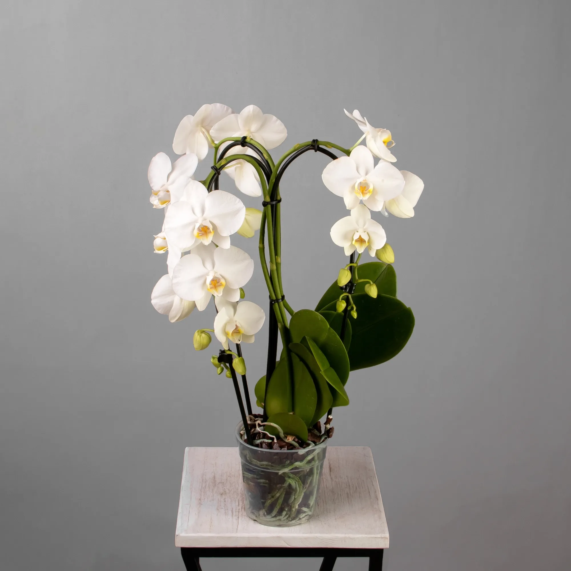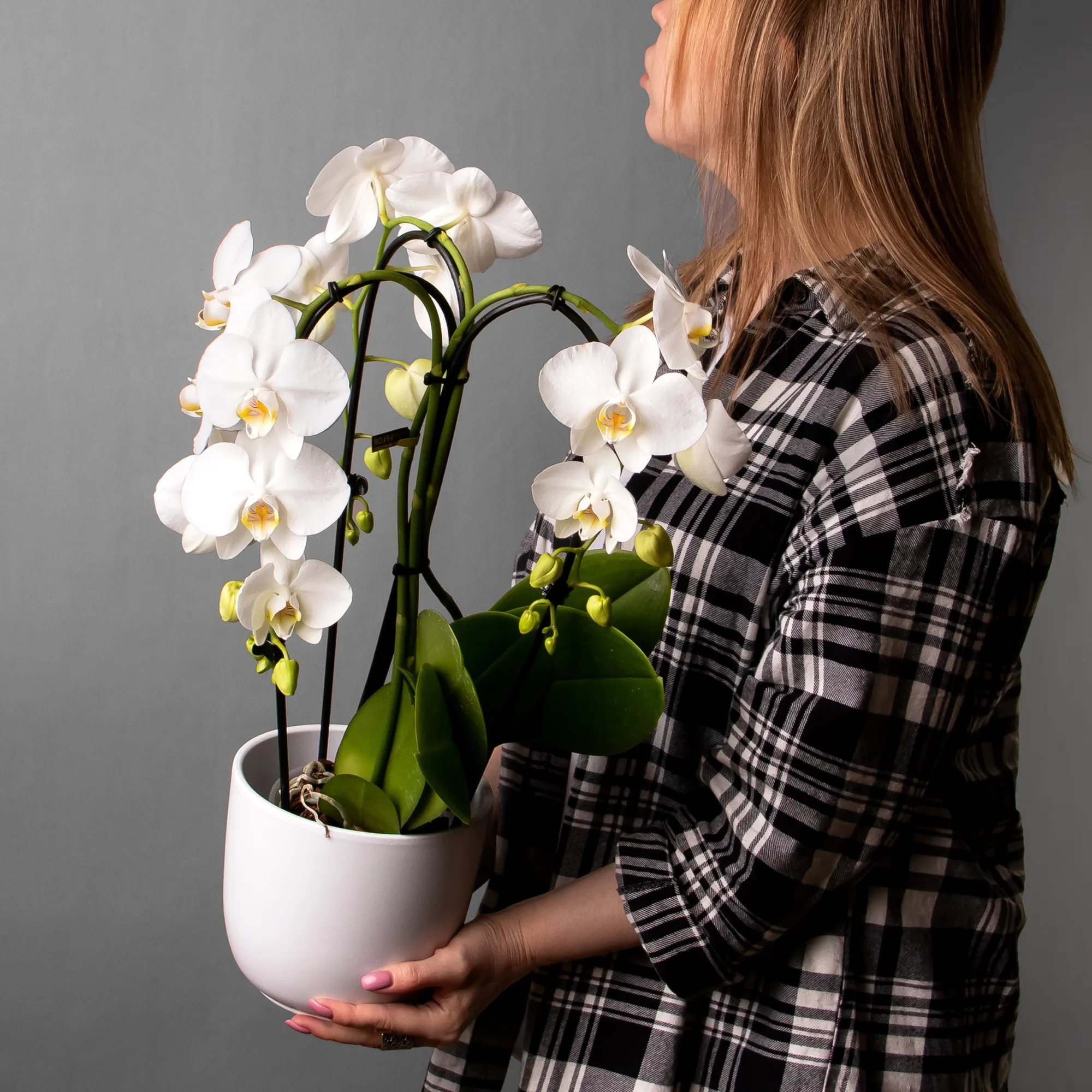 Как правило, растения доставляются в техническом пластиковом горшке от поставщика. Если в наименовании указано «в керамике/цинке», то в эту стоимость входит декоративное кашпо.