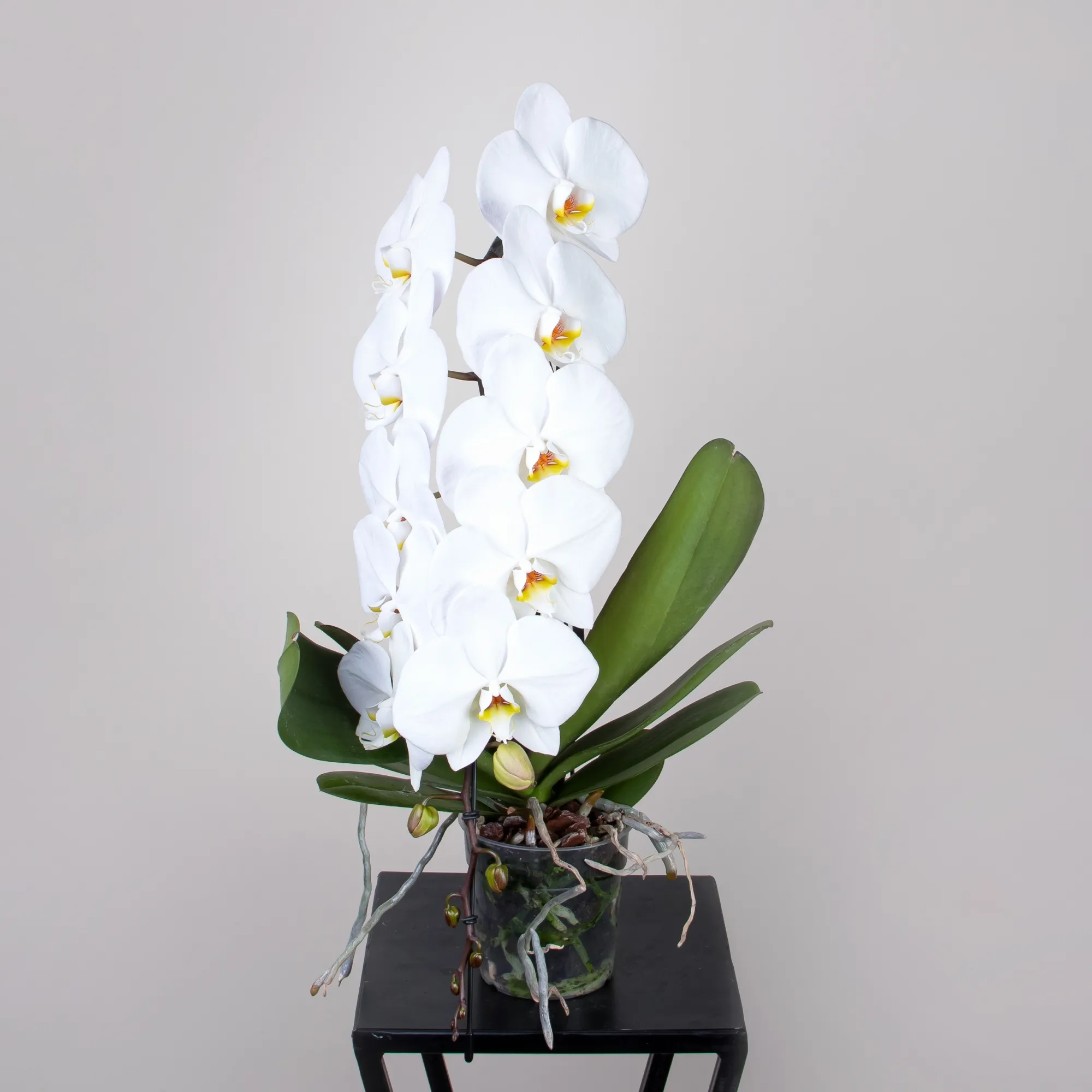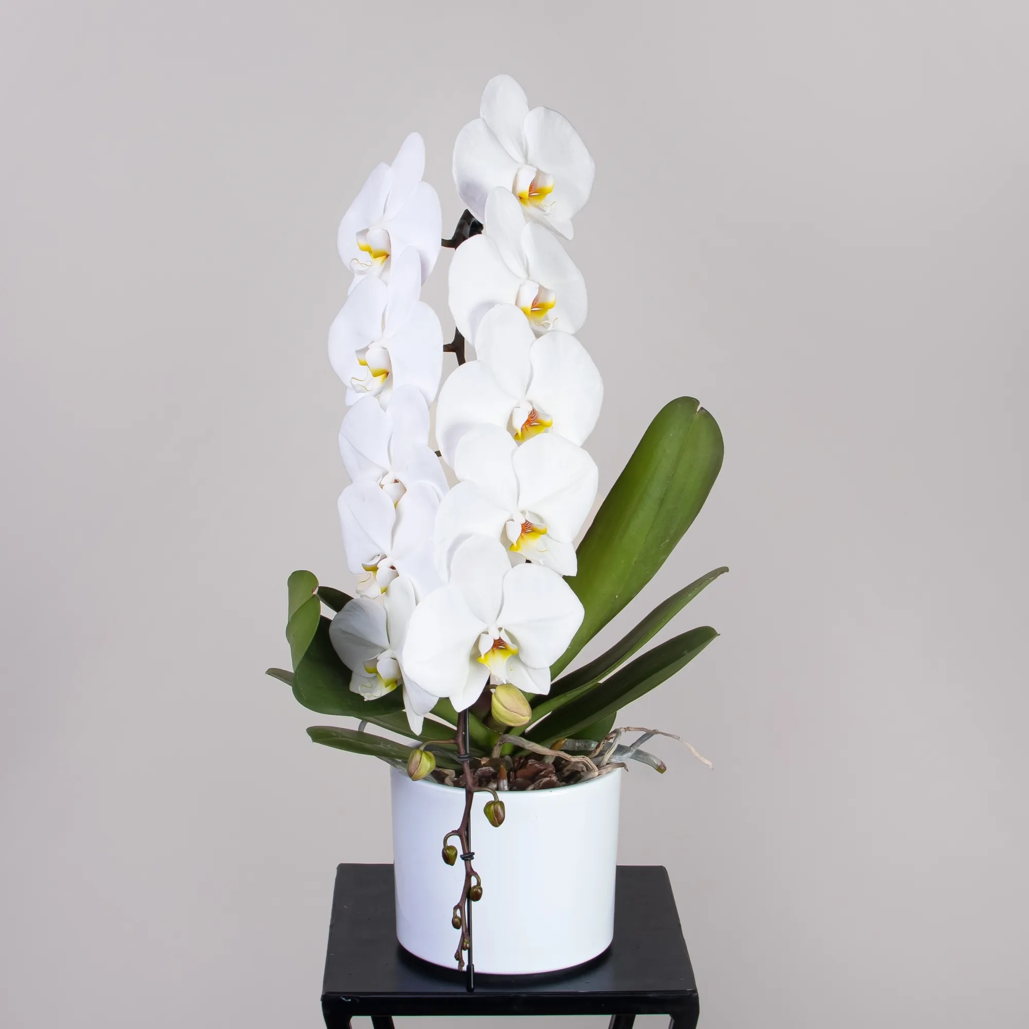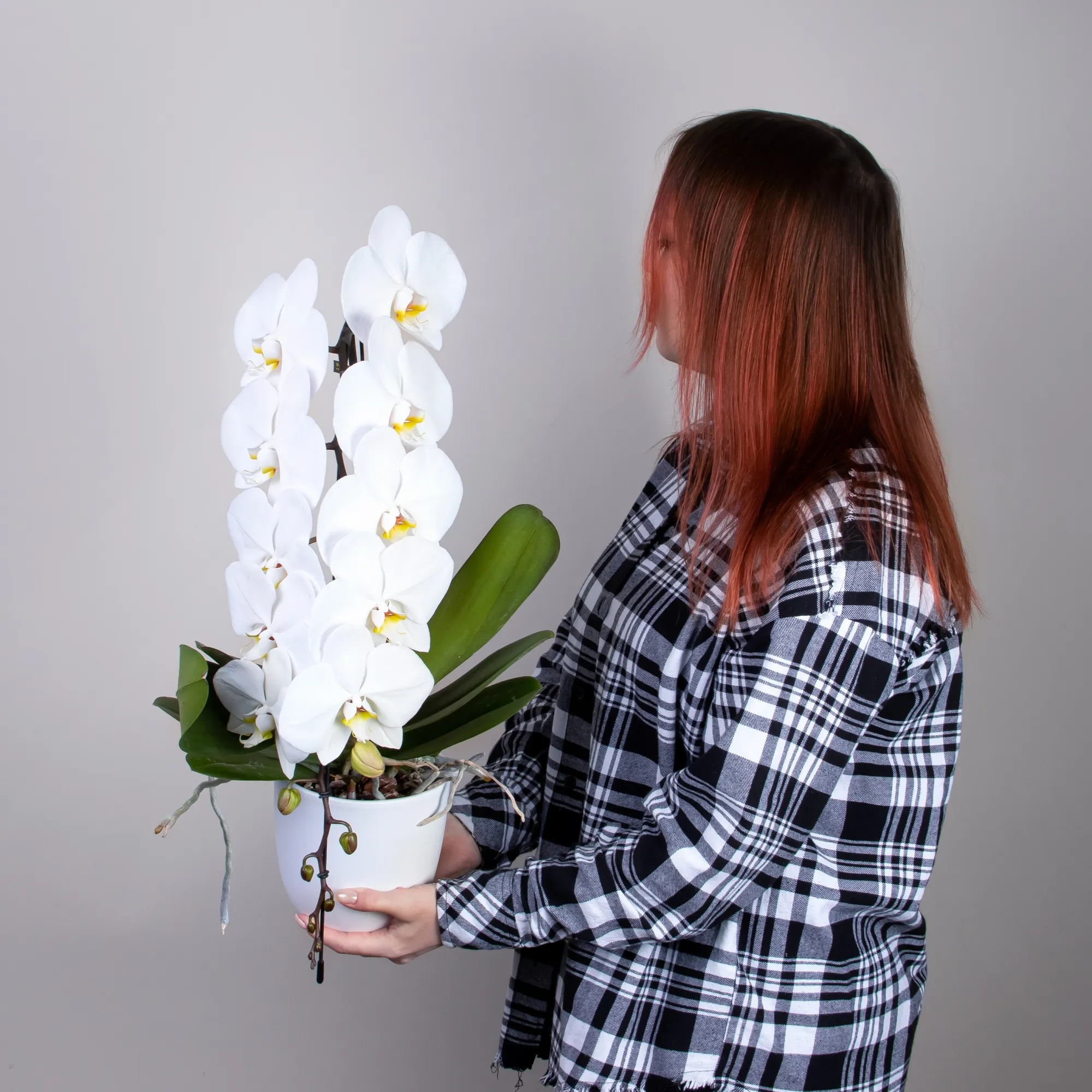Как правило, растения доставляются в техническом пластиковом горшке от поставщика. Если в наименовании указано «в керамике/цинке», то в эту стоимость входит декоративное кашпо.