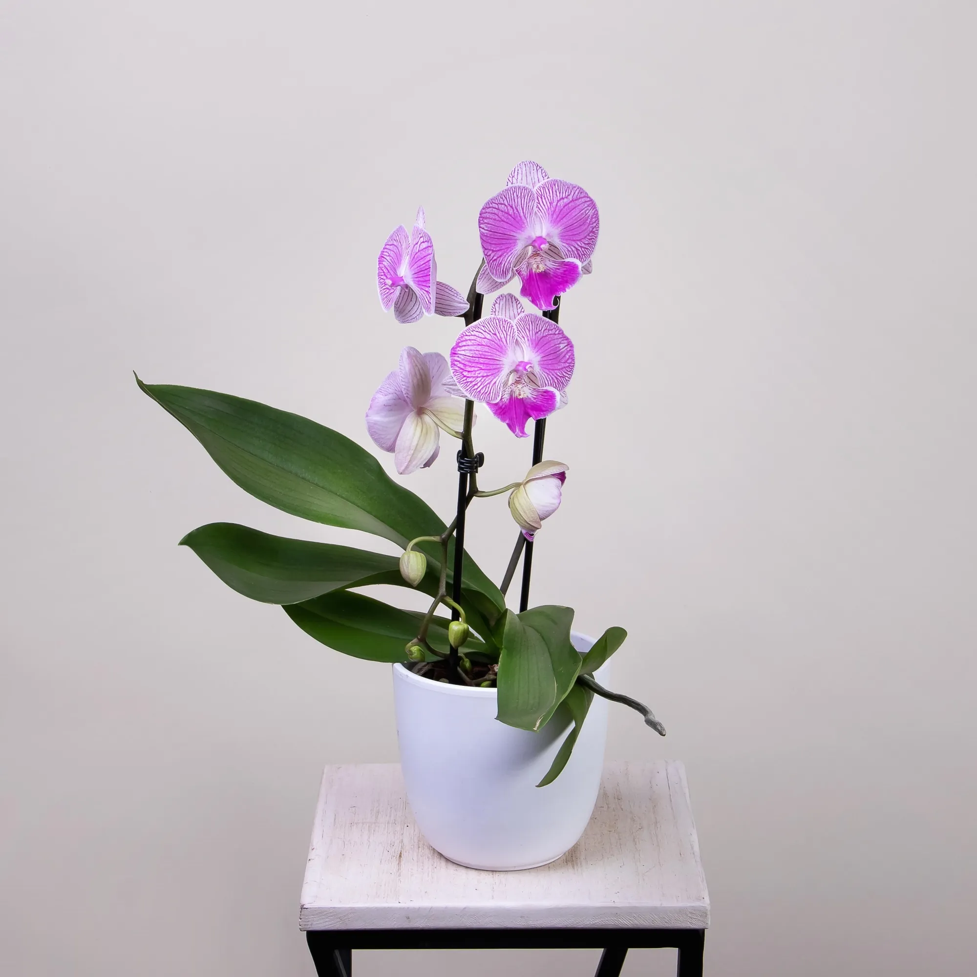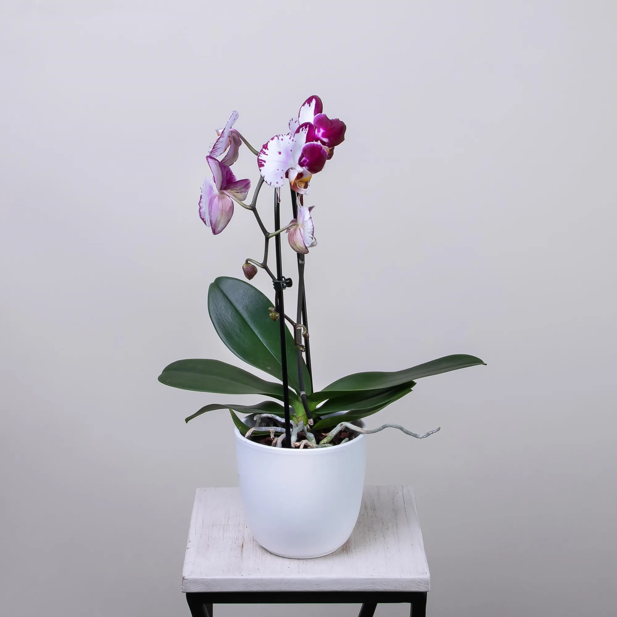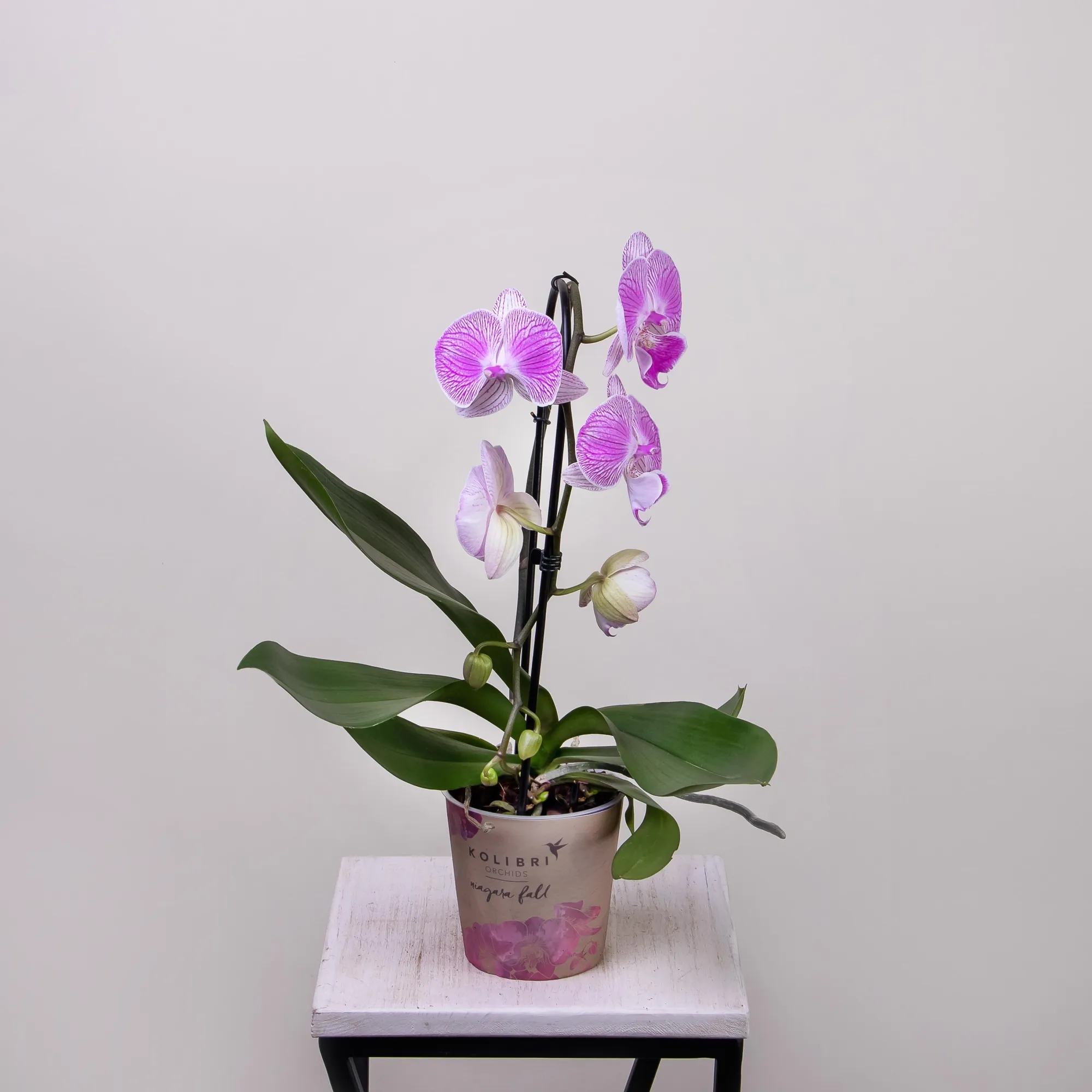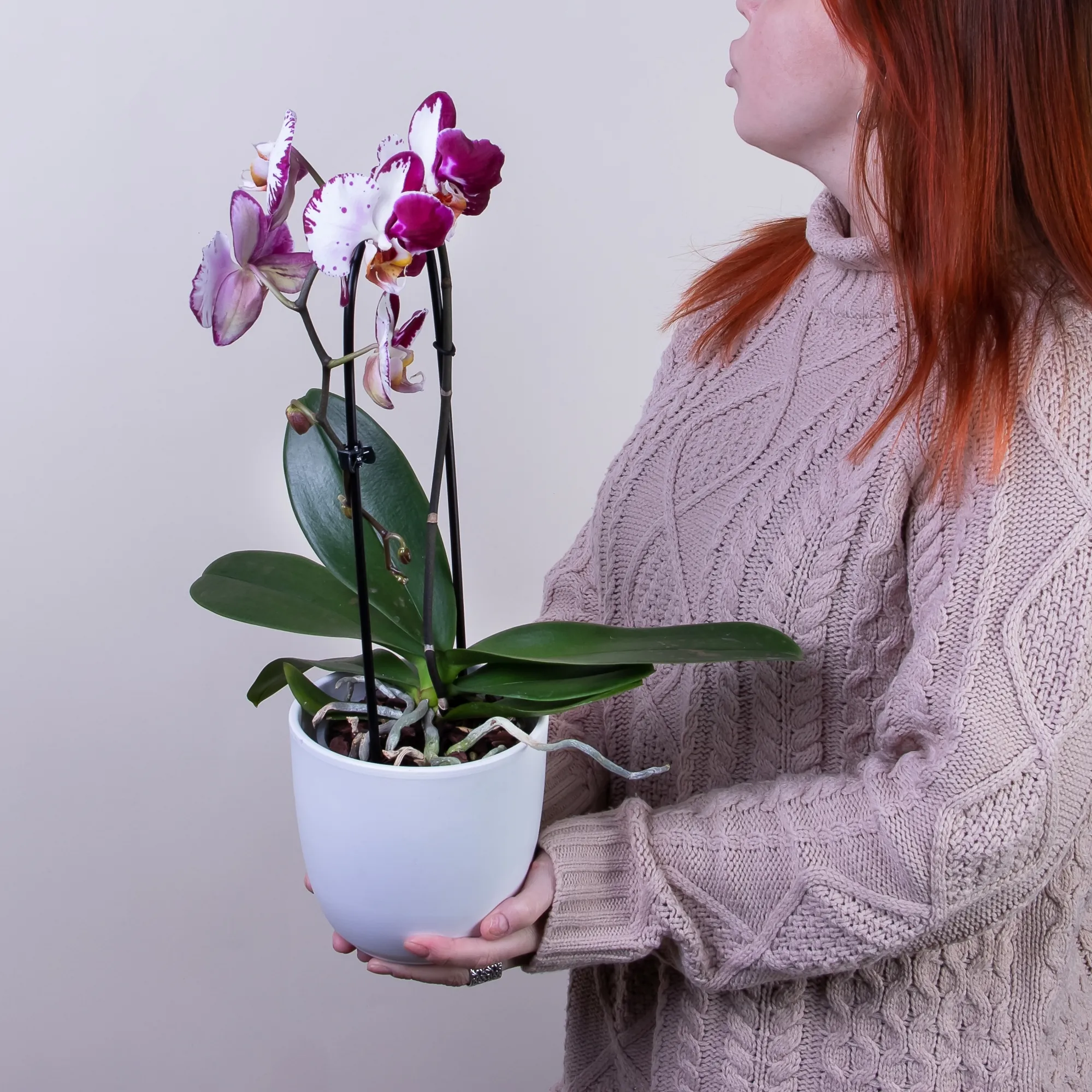 Как правило, растения доставляются в техническом пластиковом горшке от поставщика. Если в наименовании указано «в керамике/цинке», то в эту стоимость входит декоративное кашпо.