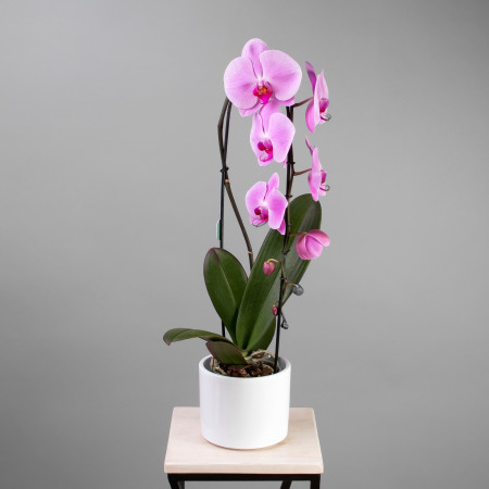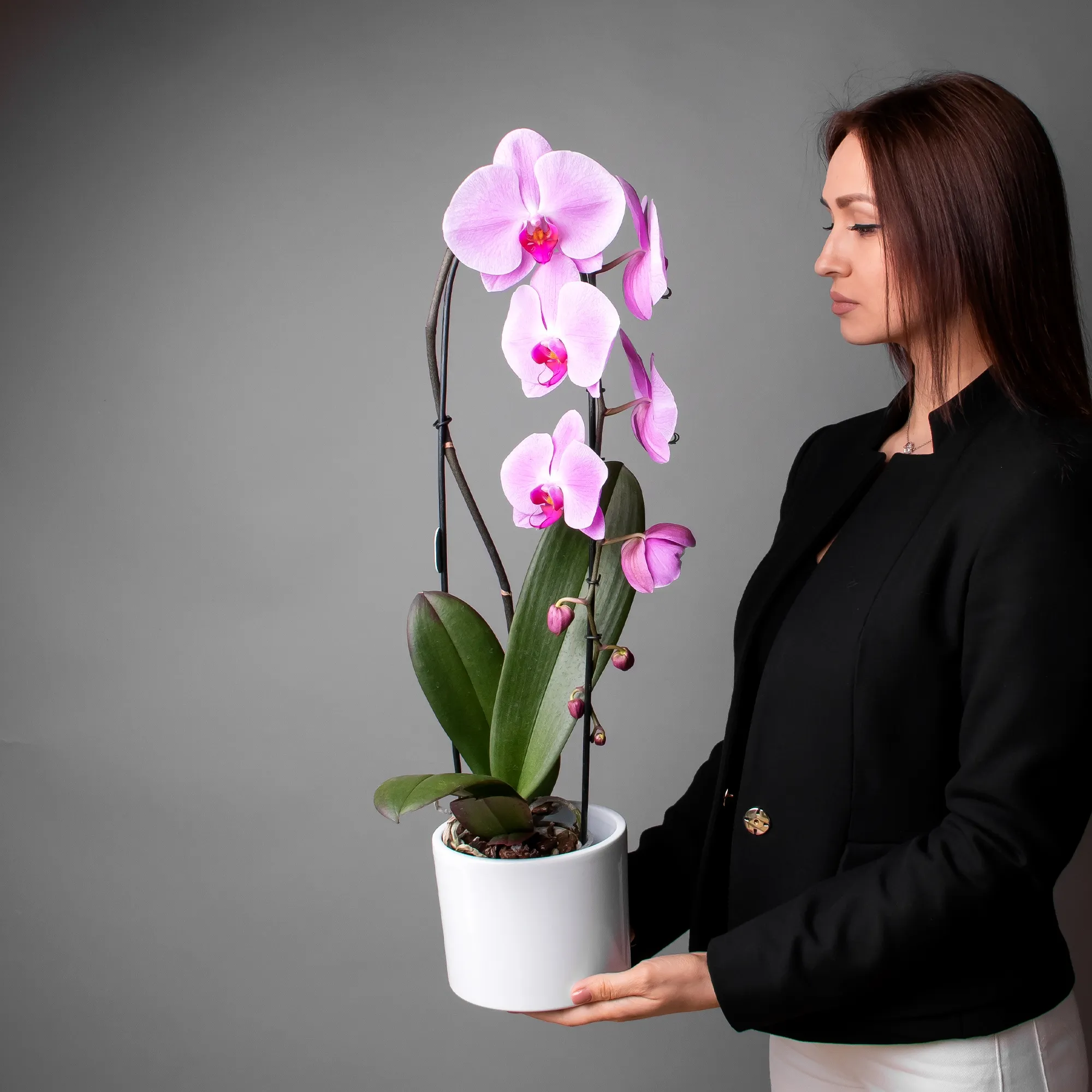 Как правило, растения доставляются в техническом пластиковом горшке от поставщика. Если в наименовании указано «в керамике/цинке», то в эту стоимость входит декоративное кашпо.