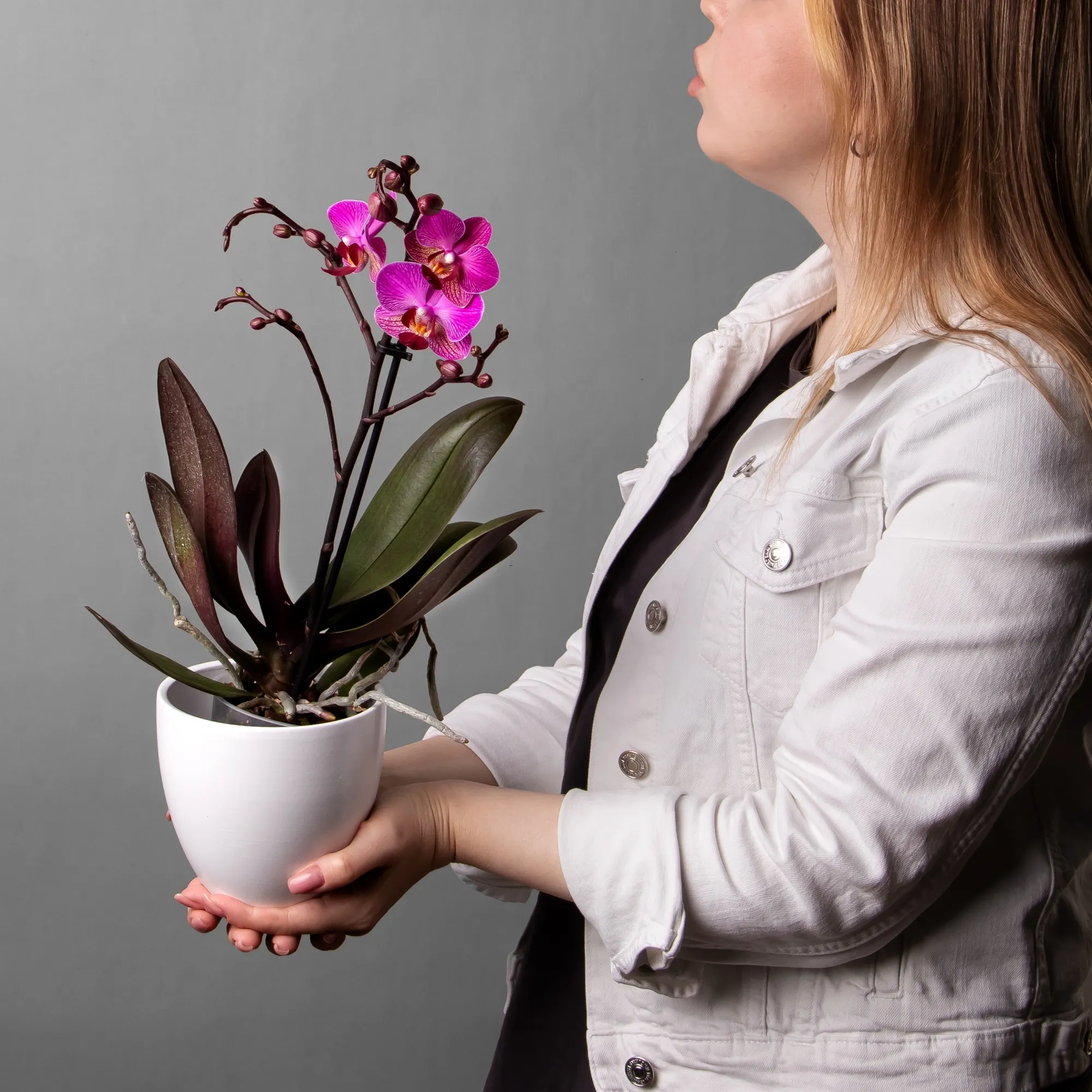 Как правило, растения доставляются в техническом пластиковом горшке от поставщика. Если в наименовании указано «в керамике/цинке», то в эту стоимость входит декоративное кашпо.