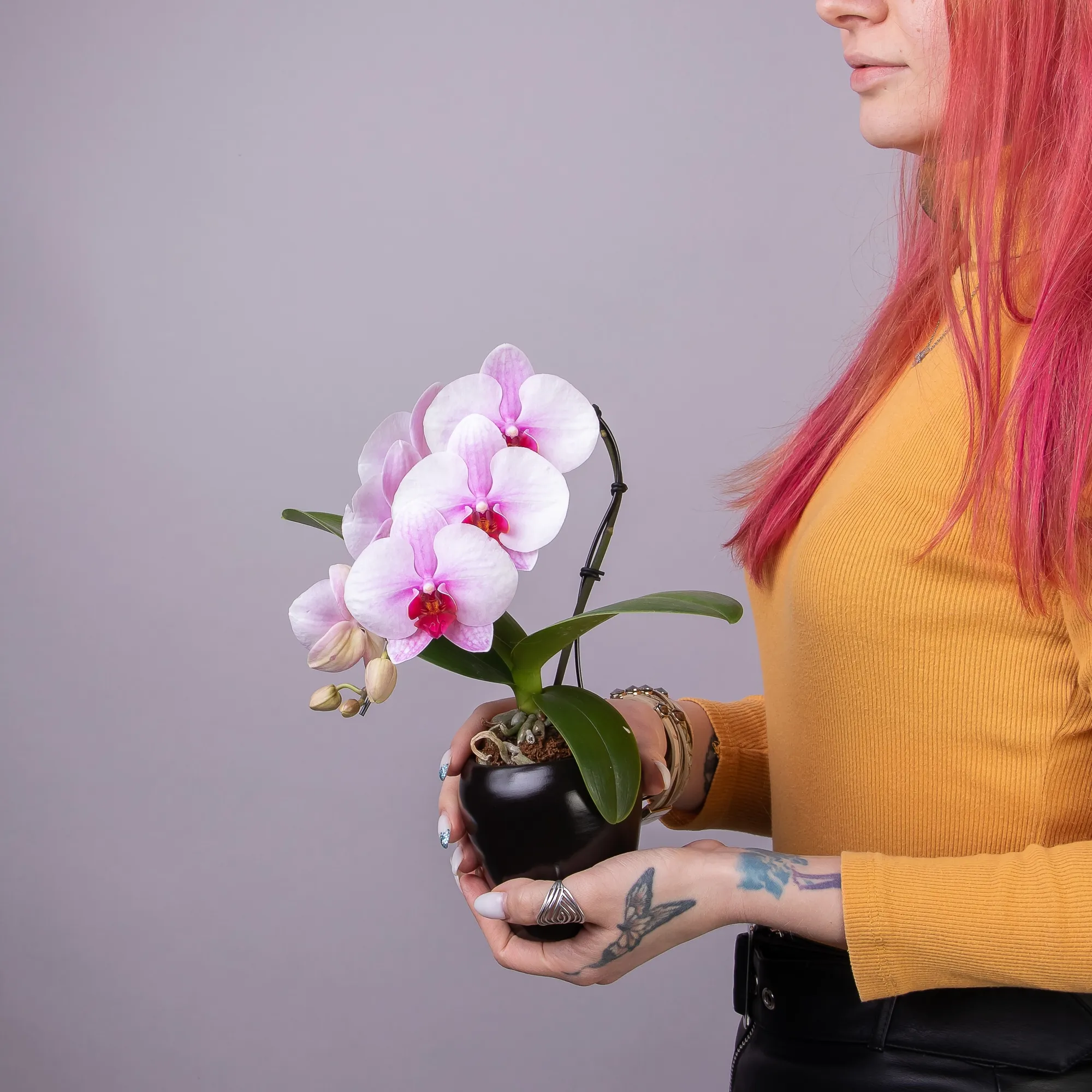 Фаленопсис Колибри Каскад Пинк в черной керамике