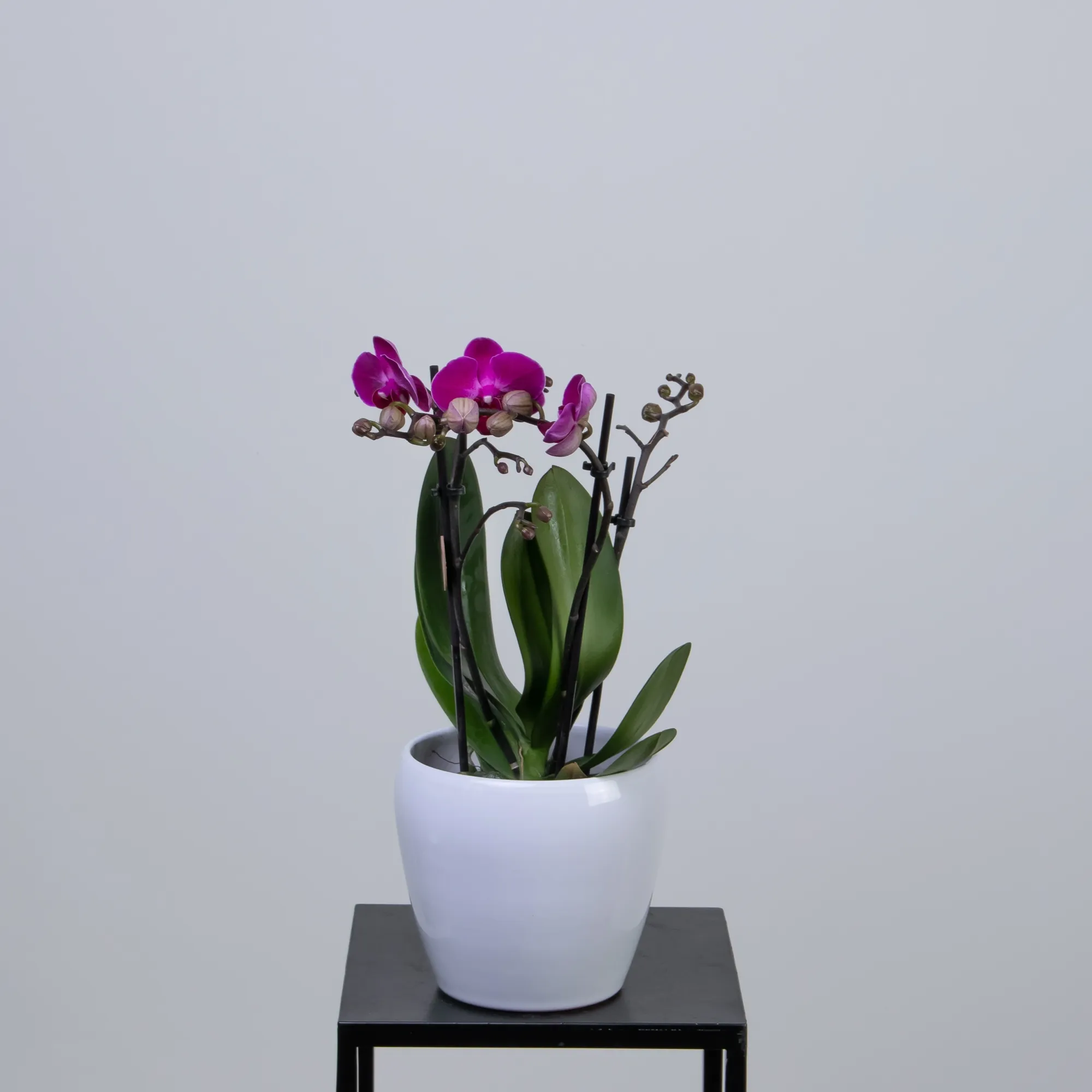 Как правило, растения доставляются в техническом пластиковом горшке от поставщика. Если в наименовании указано «в керамике/цинке», то в эту стоимость входит декоративное кашпо.