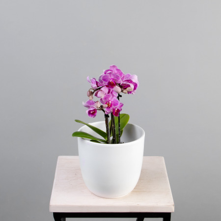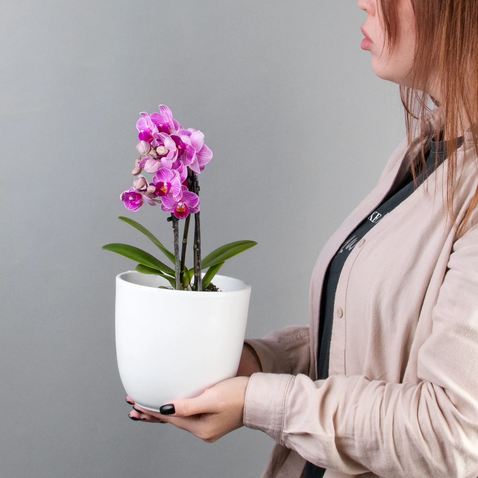 Как правило, растения доставляются в техническом пластиковом горшке от поставщика. Если в наименовании указано «в керамике/цинке», то в эту стоимость входит декоративное кашпо.