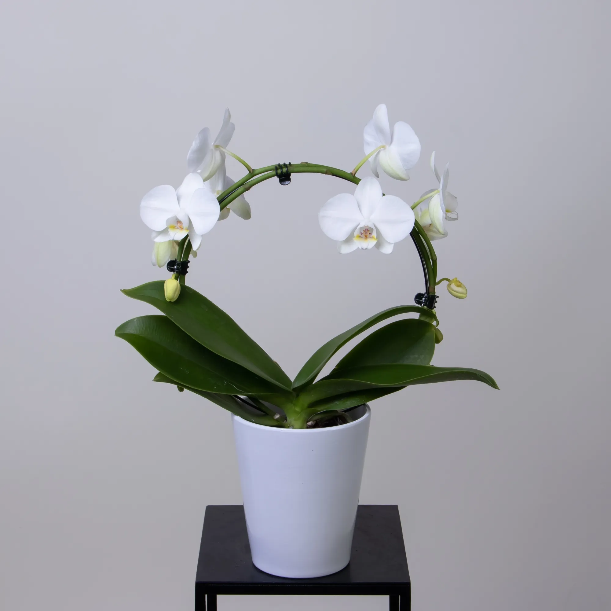 Как правило, растения доставляются в техническом пластиковом горшке от поставщика. Если в наименовании указано «в керамике/цинке», то в эту стоимость входит декоративное кашпо.