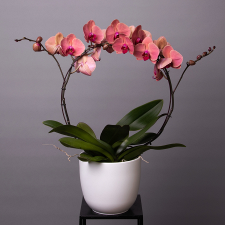 Как правило, растения доставляются в техническом пластиковом горшке от поставщика. Если в наименовании указано «в керамике/цинке», то в эту стоимость входит декоративное кашпо.