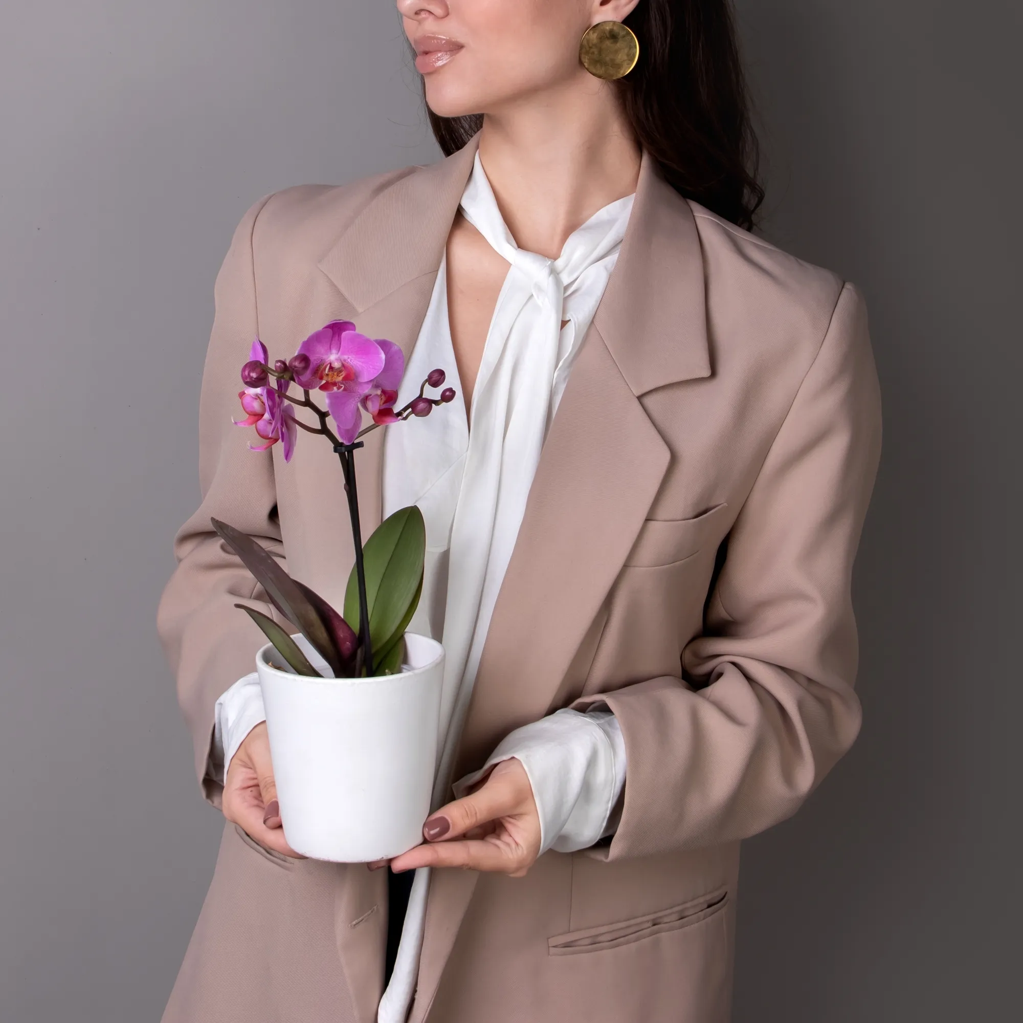 Как правило, растения доставляются в техническом пластиковом горшке от поставщика. Если в наименовании указано «в керамике/цинке», то в эту стоимость входит декоративное кашпо.