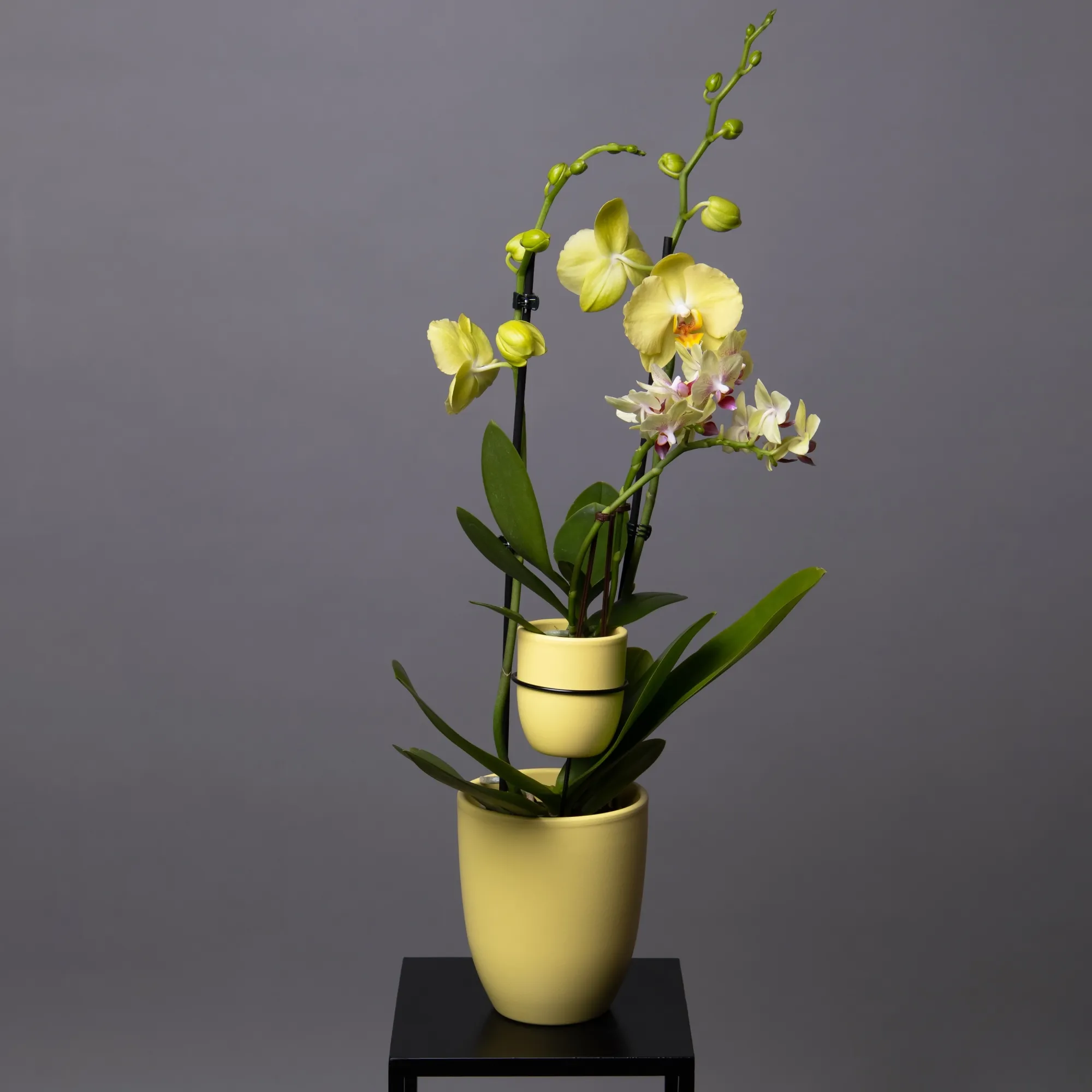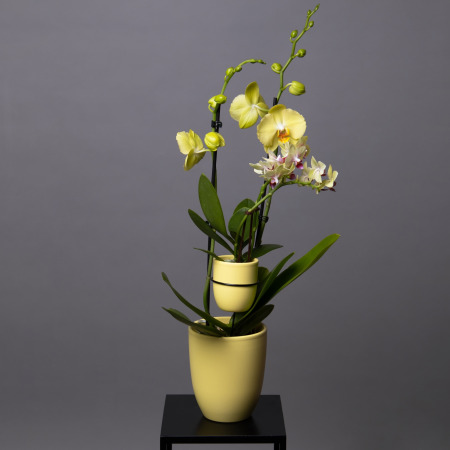 Как правило, растения доставляются в техническом пластиковом горшке от поставщика. Если в наименовании указано «в керамике/цинке», то в эту стоимость входит декоративное кашпо.