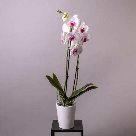 Как правило, растения доставляются в техническом пластиковом горшке от поставщика. Если в наименовании указано «в керамике/цинке», то в эту стоимость входит декоративное кашпо.