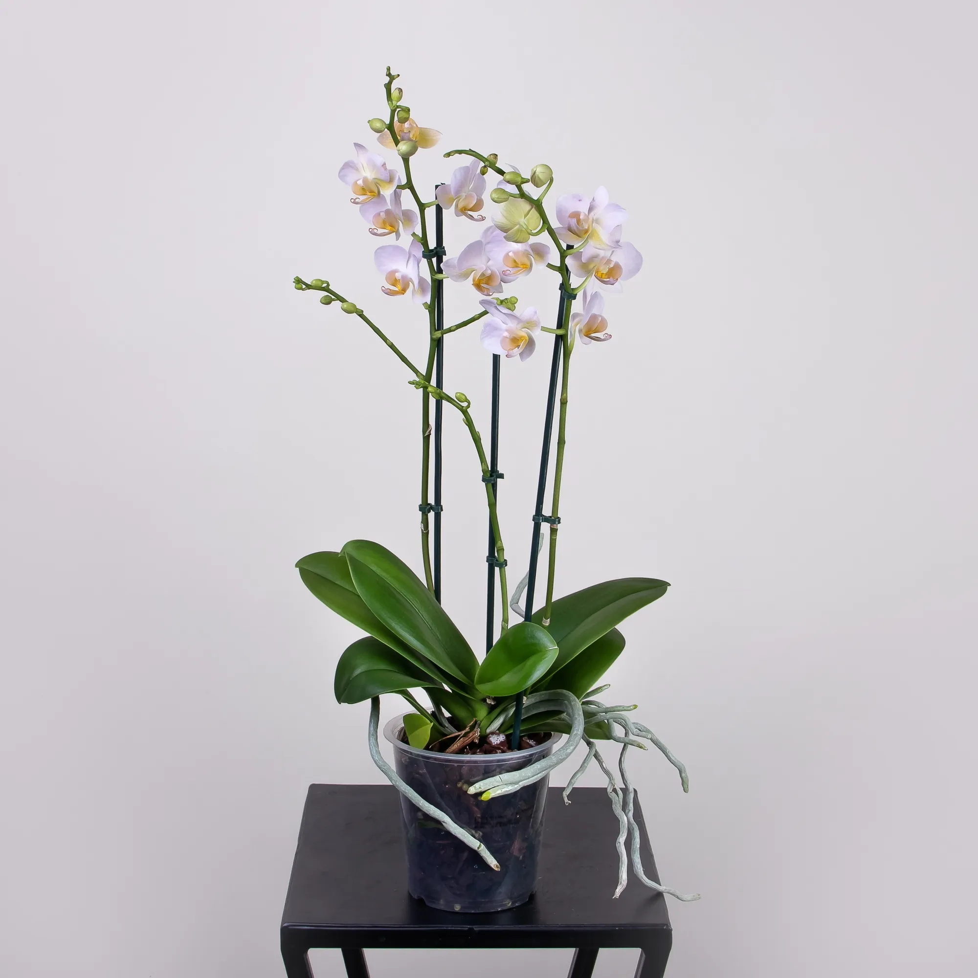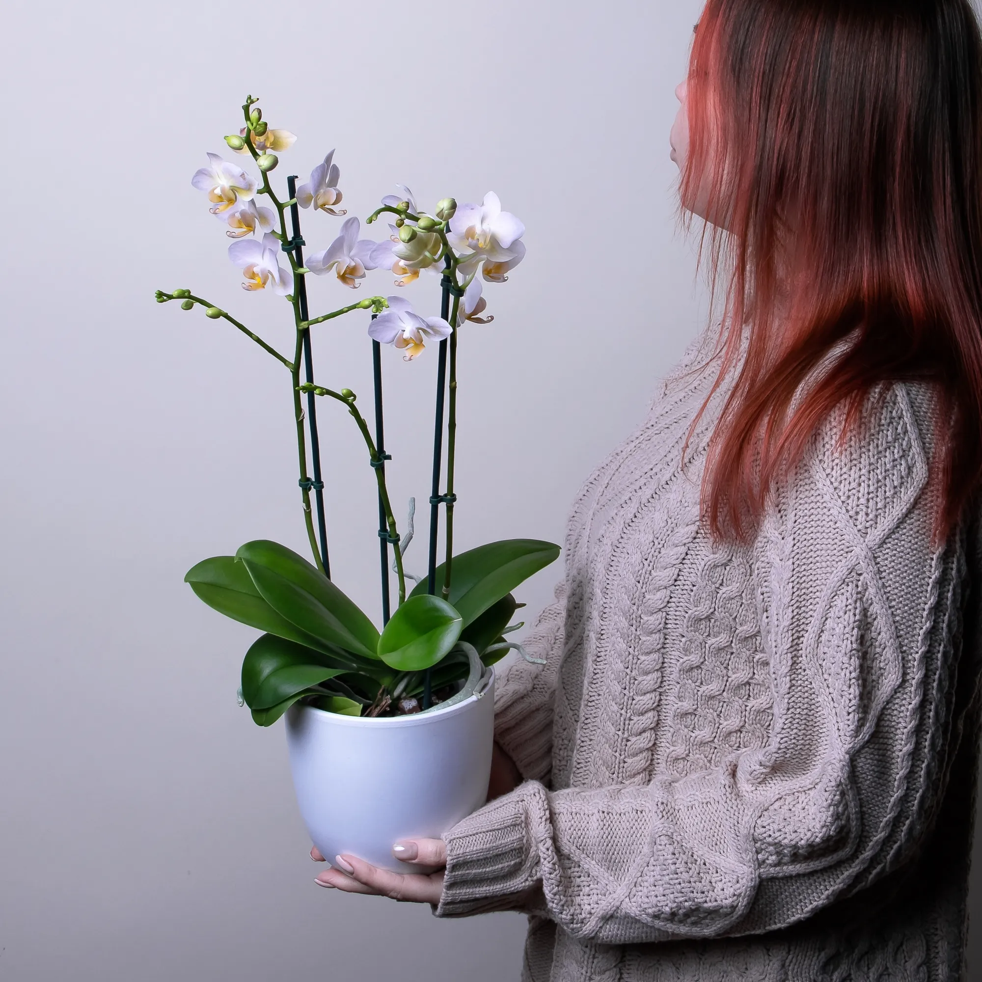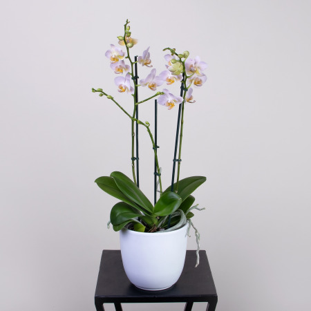 Как правило, растения доставляются в техническом пластиковом горшке от поставщика. Если в наименовании указано «в керамике/цинке», то в эту стоимость входит декоративное кашпо.