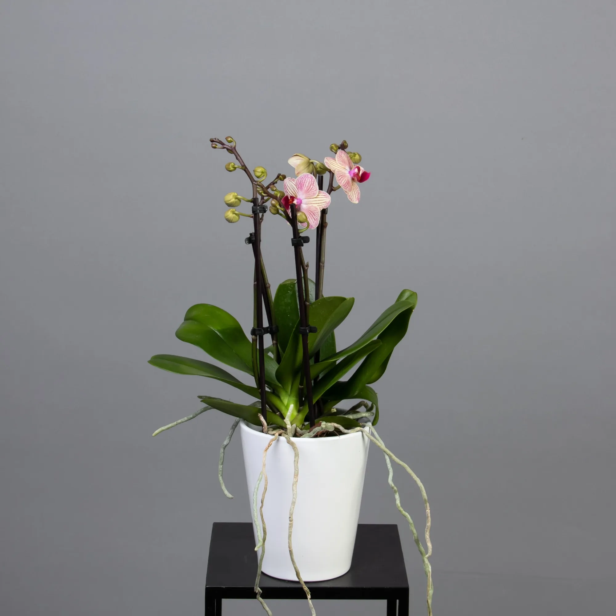 Как правило, растения доставляются в техническом пластиковом горшке от поставщика. Если в наименовании указано «в керамике/цинке», то в эту стоимость входит декоративное кашпо.