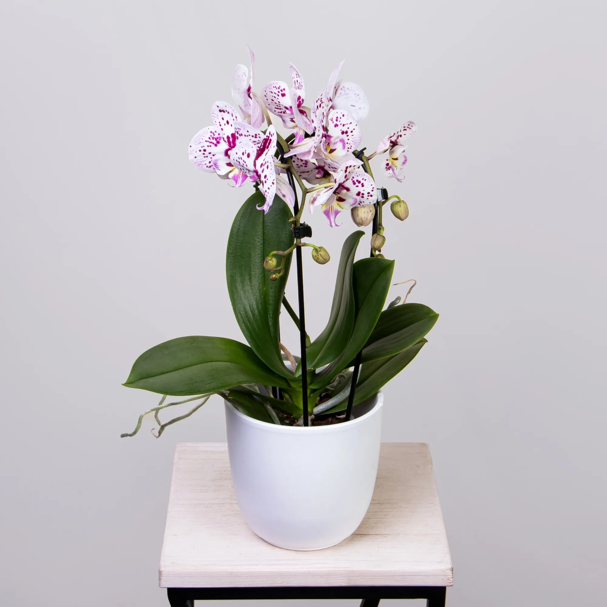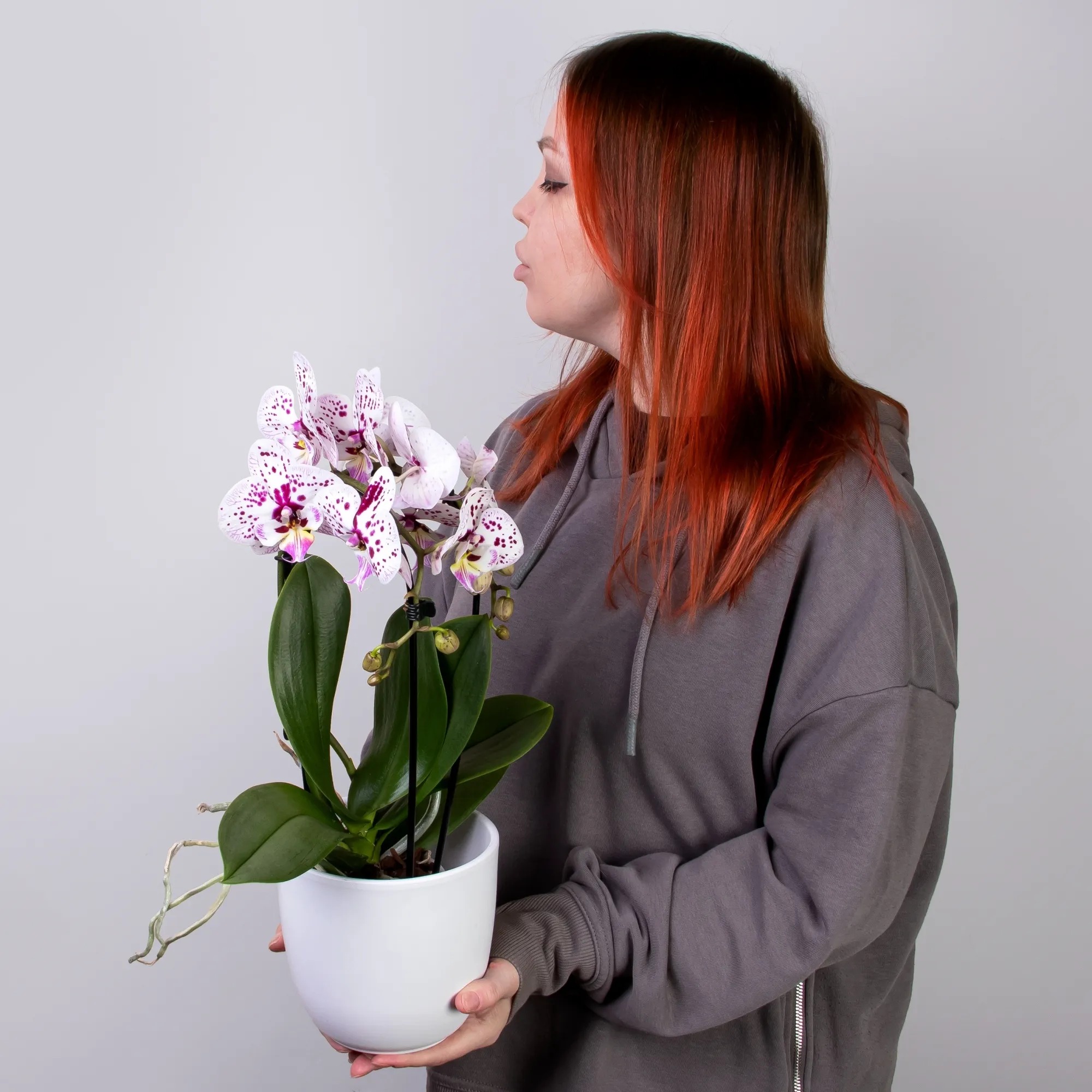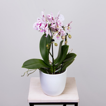 Как правило, растения доставляются в техническом пластиковом горшке от поставщика. Если в наименовании указано «в керамике/цинке», то в эту стоимость входит декоративное кашпо.