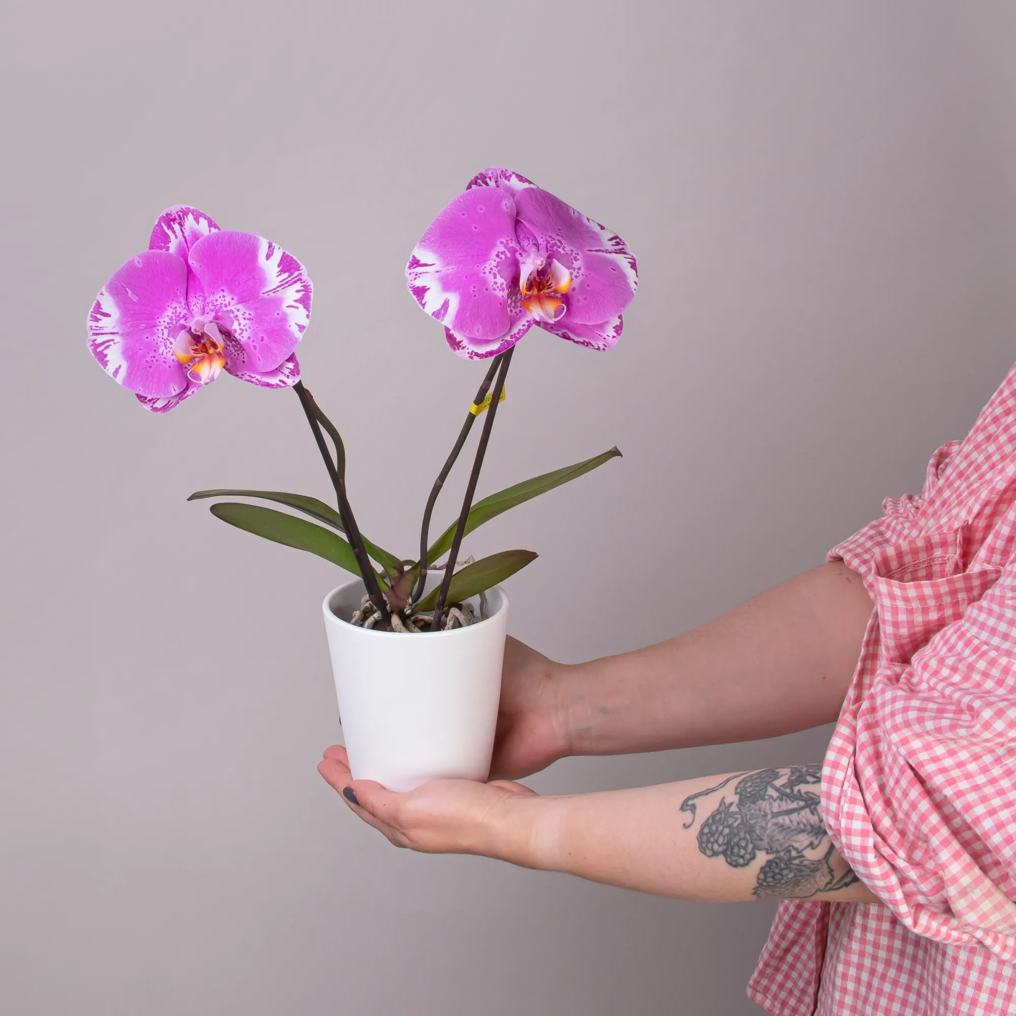 Как правило, растения доставляются в техническом пластиковом горшке от поставщика. Если в наименовании указано «в керамике/цинке», то в эту стоимость входит декоративное кашпо.