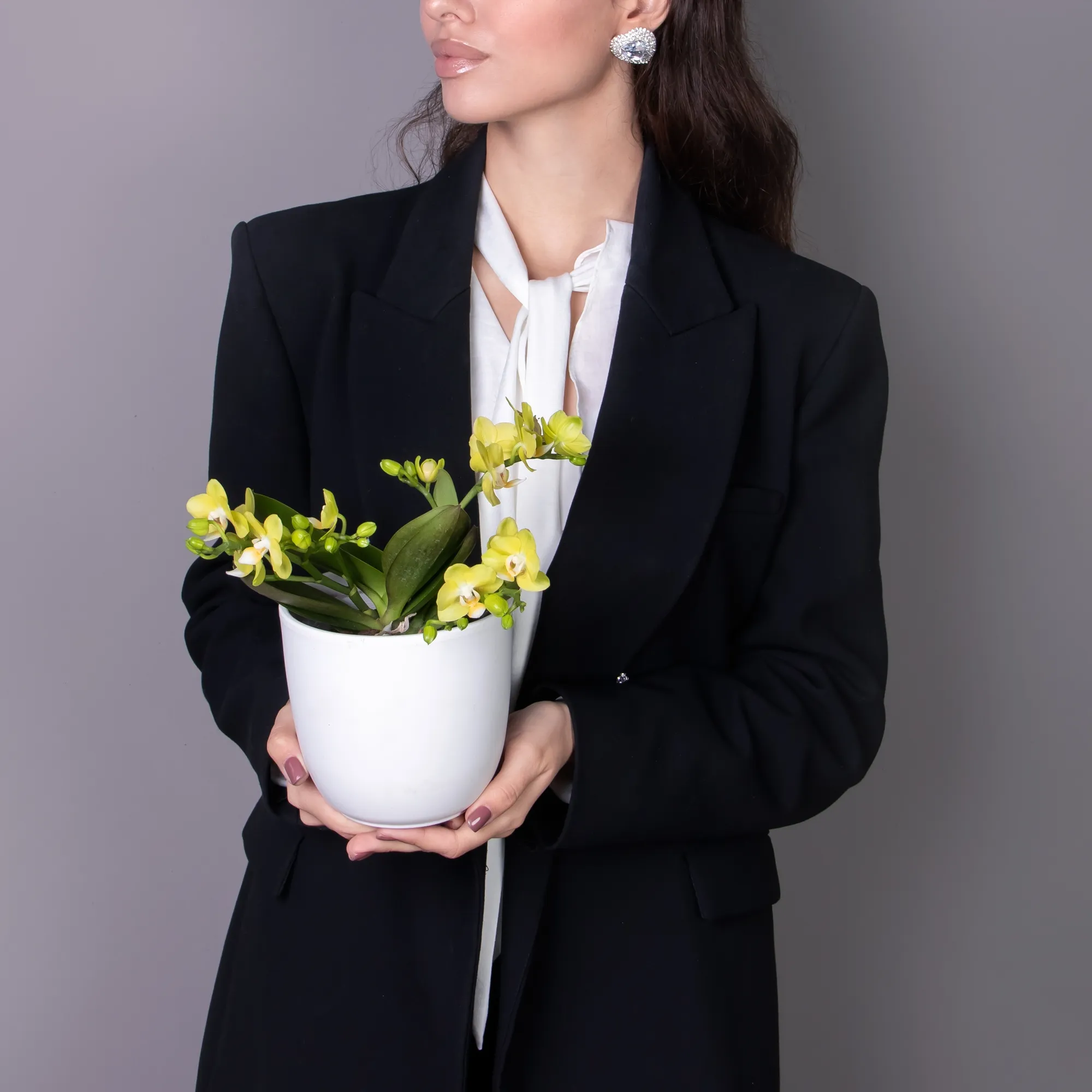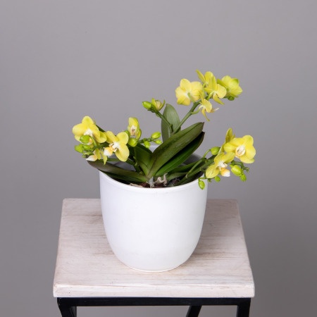 Как правило, растения доставляются в техническом пластиковом горшке от поставщика. Если в наименовании указано «в керамике/цинке», то в эту стоимость входит декоративное кашпо.