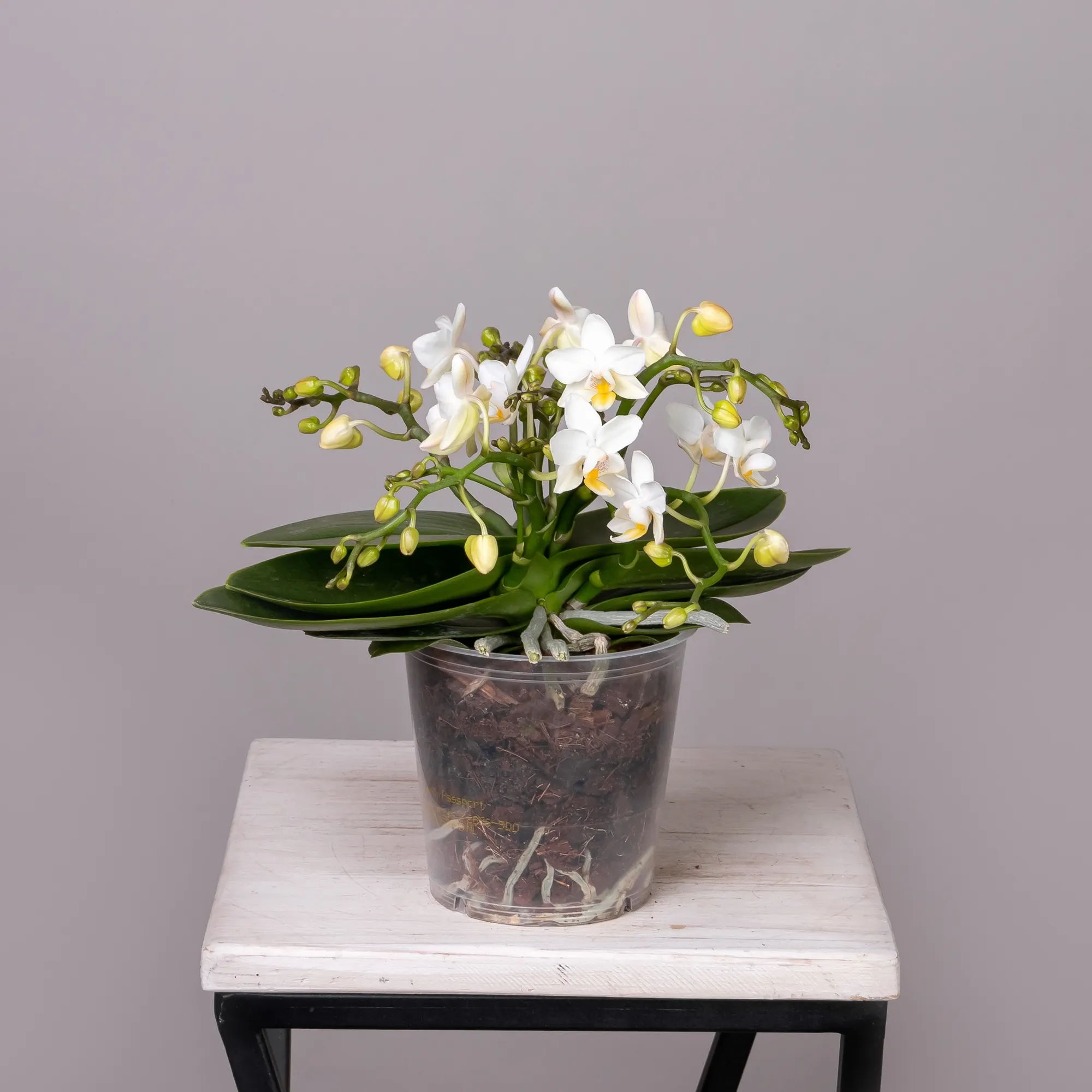Как правило, растения доставляются в техническом пластиковом горшке от поставщика. Если в наименовании указано «в керамике/цинке», то в эту стоимость входит декоративное кашпо.
