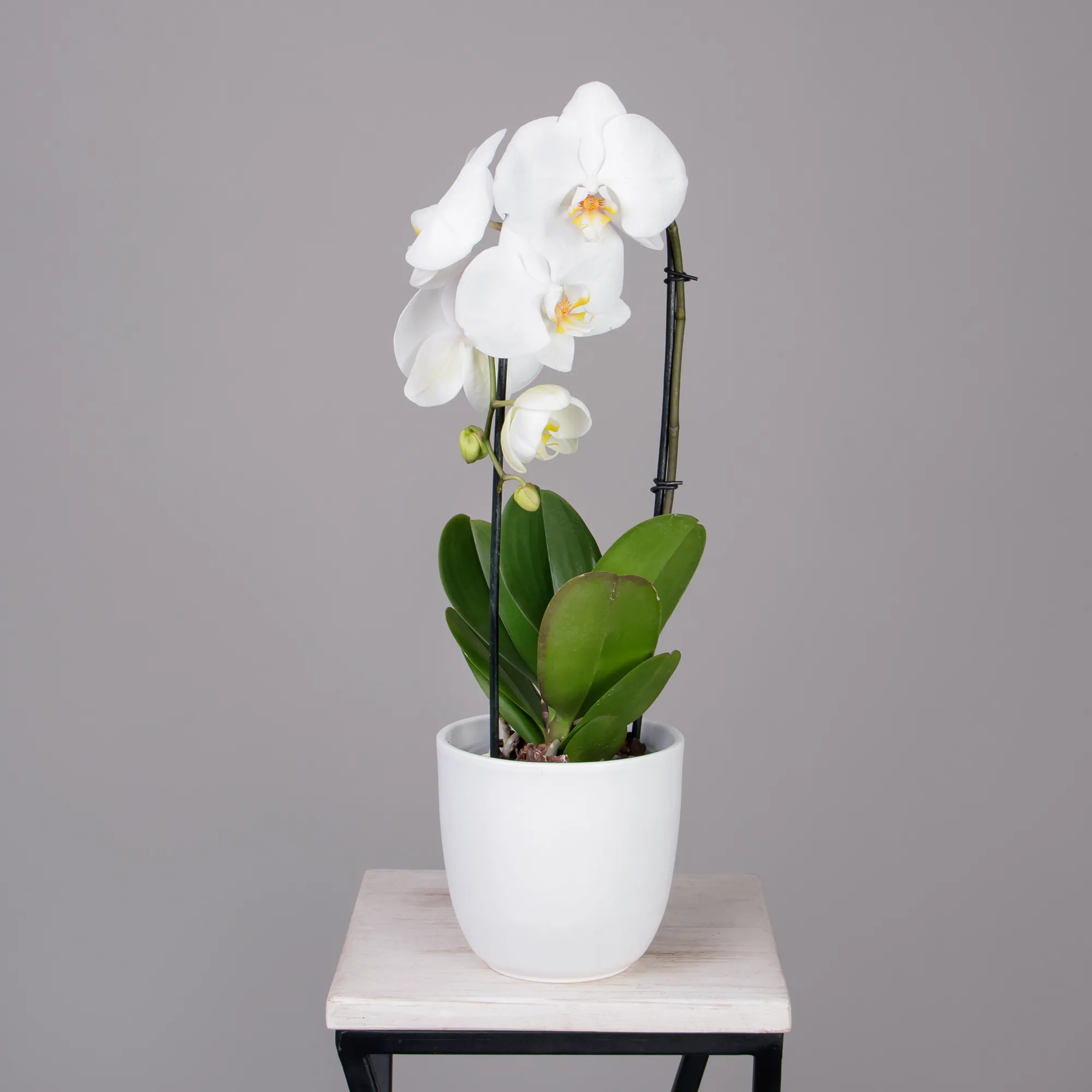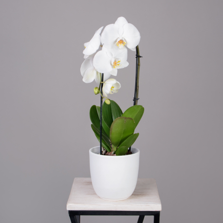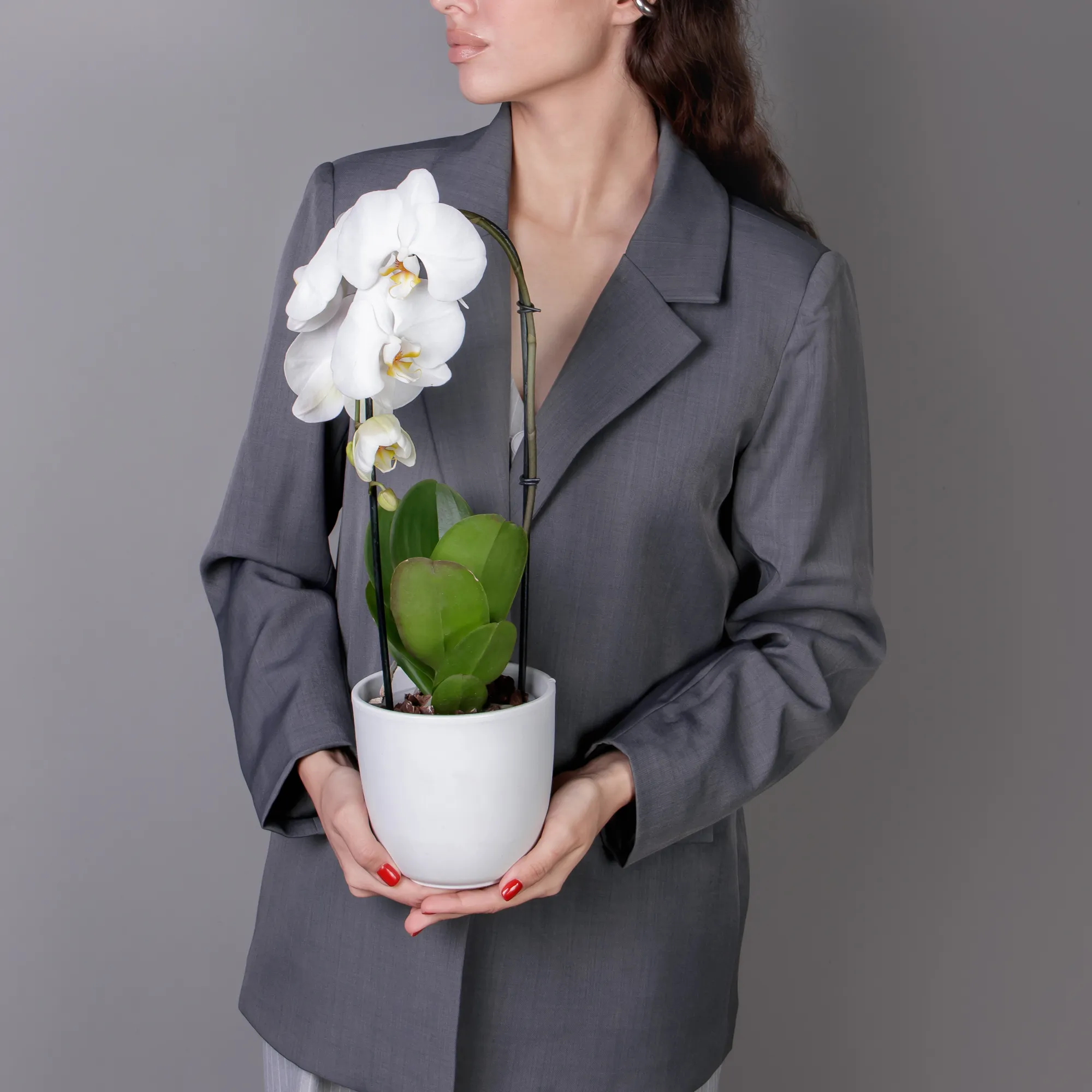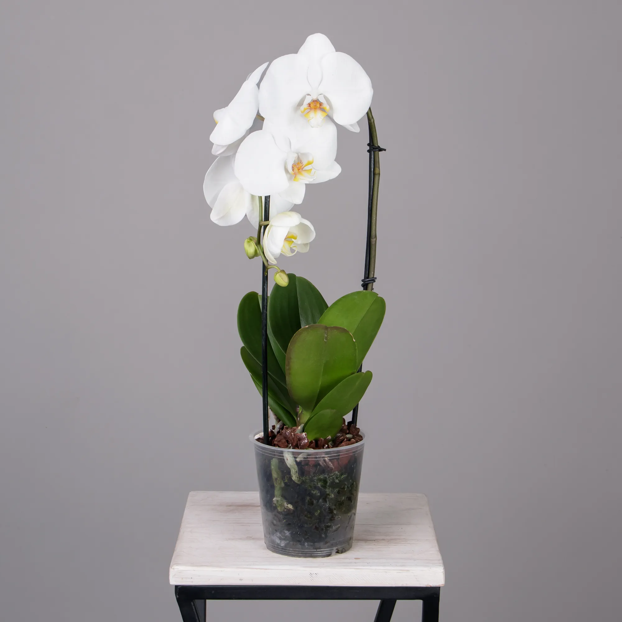Как правило, растения доставляются в техническом пластиковом горшке от поставщика. Если в наименовании указано «в керамике/цинке», то в эту стоимость входит декоративное кашпо.