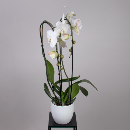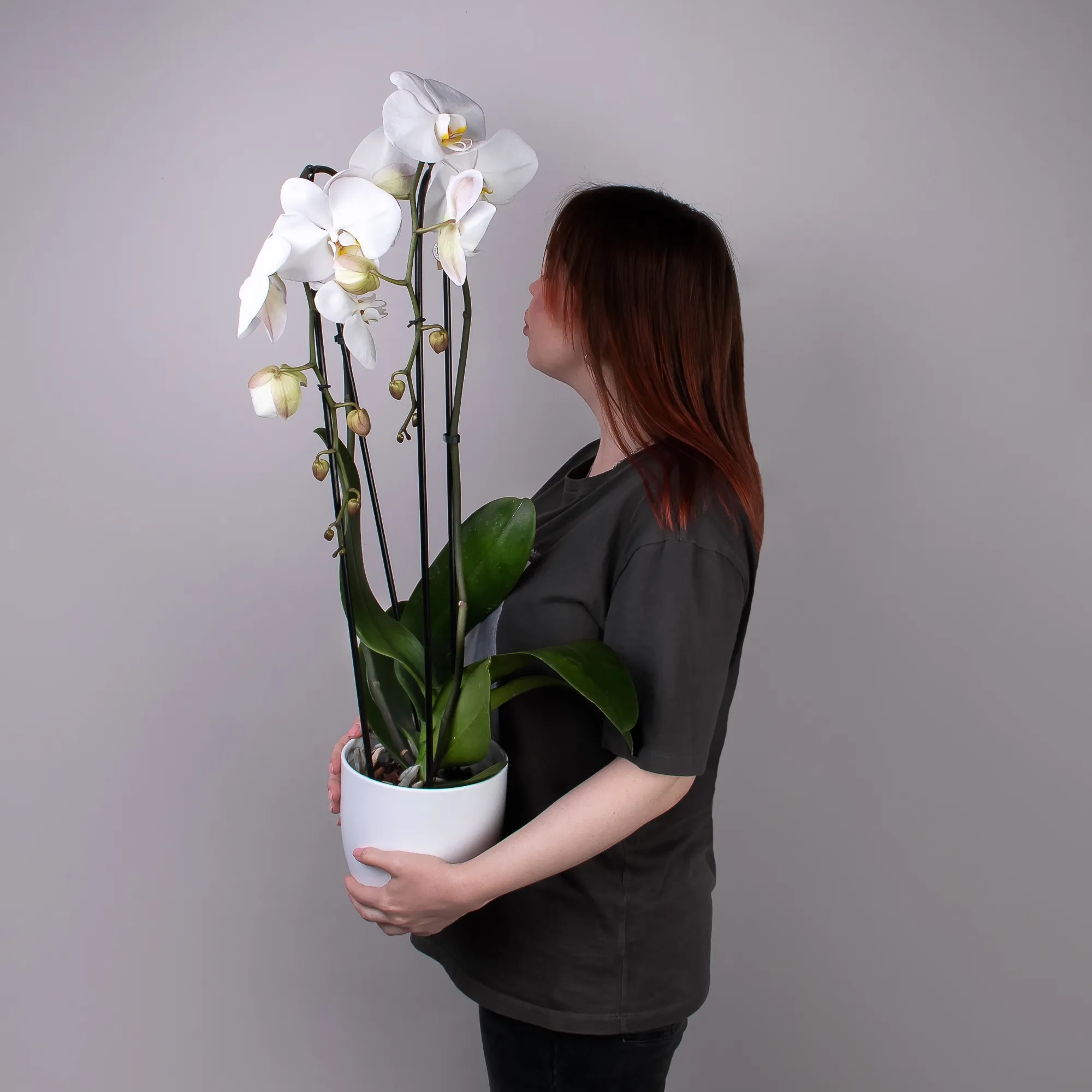 Как правило, растения доставляются в техническом пластиковом горшке от поставщика. Если в наименовании указано «в керамике/цинке», то в эту стоимость входит декоративное кашпо.