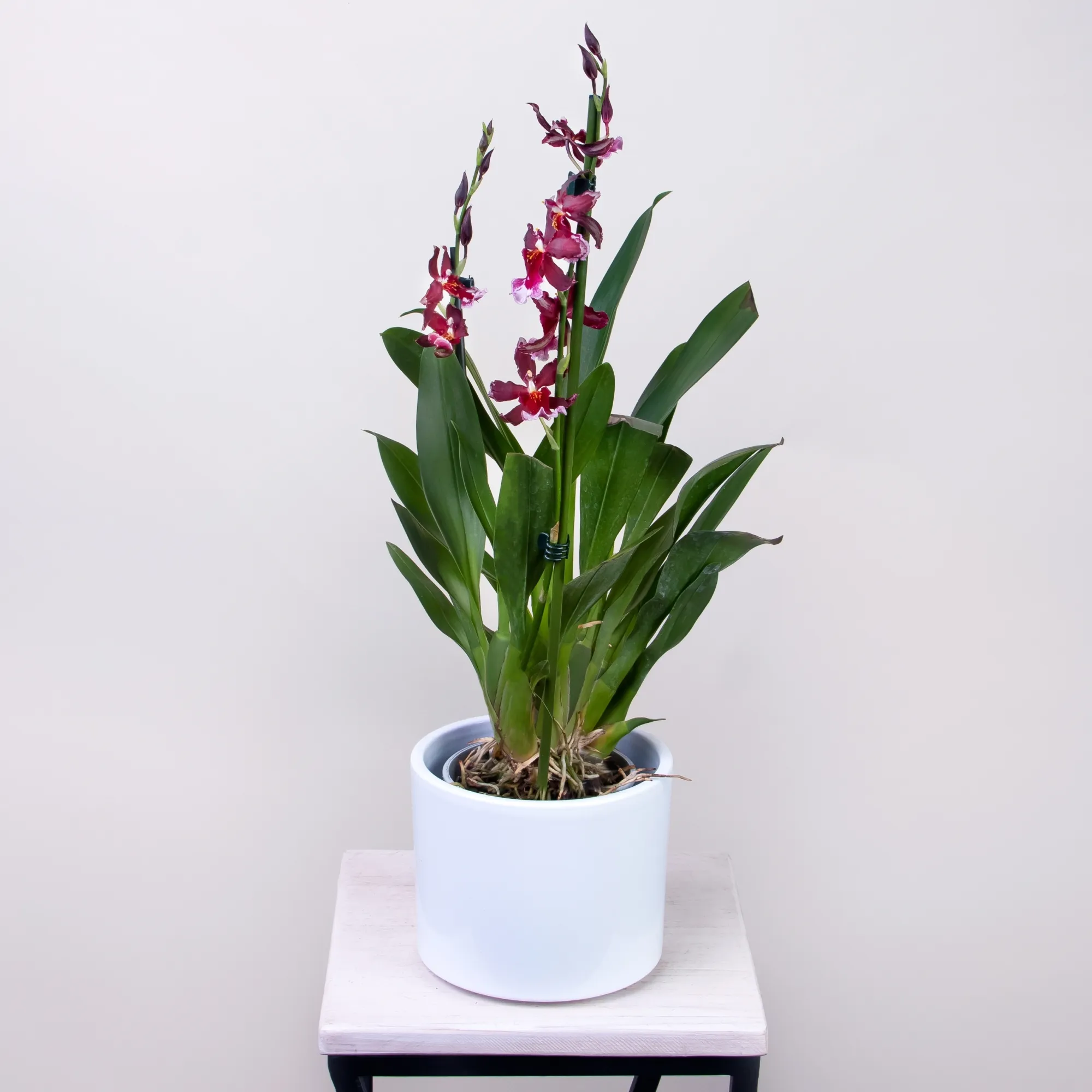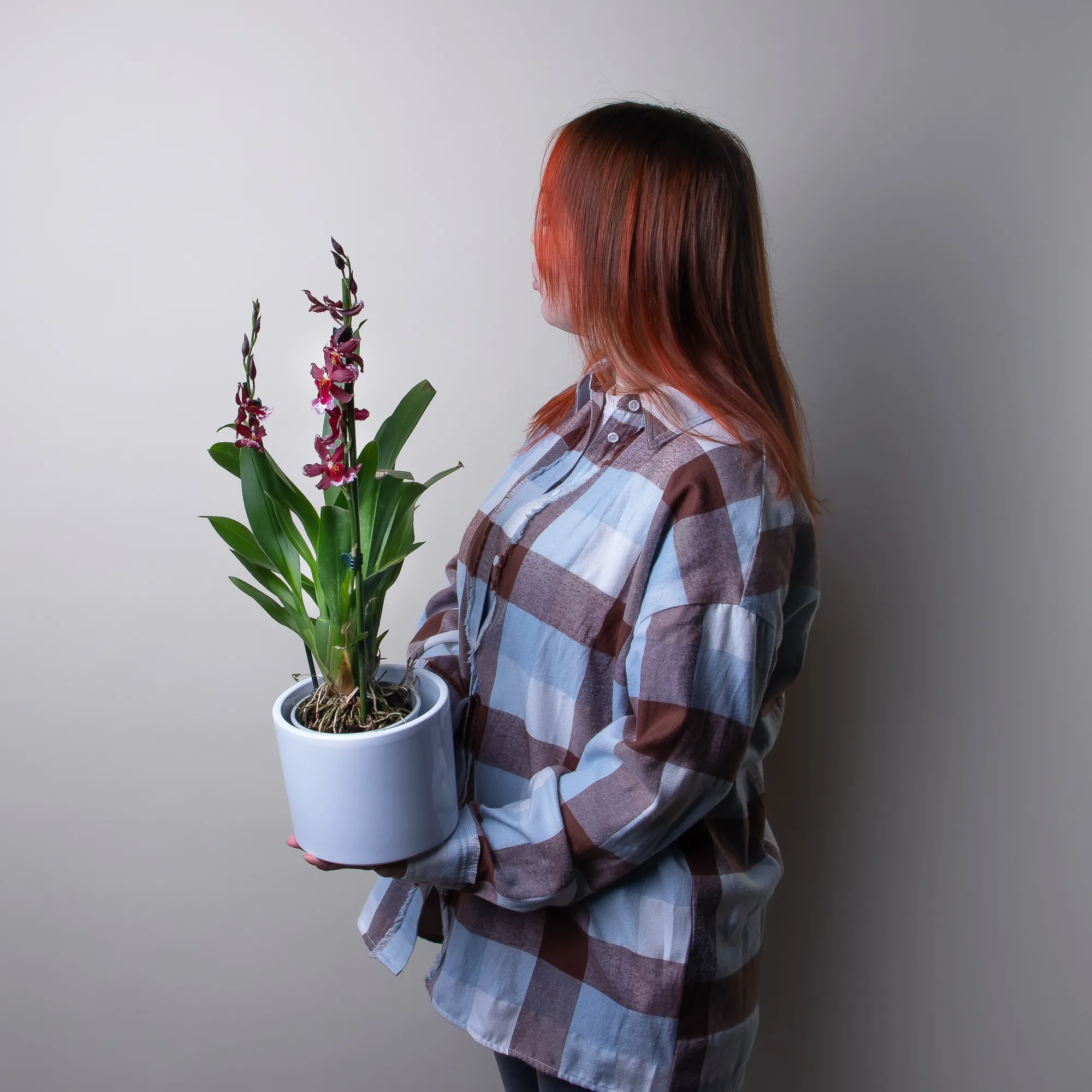 Как правило, растения доставляются в техническом пластиковом горшке от поставщика. Если в наименовании указано «в керамике/цинке», то в эту стоимость входит декоративное кашпо.