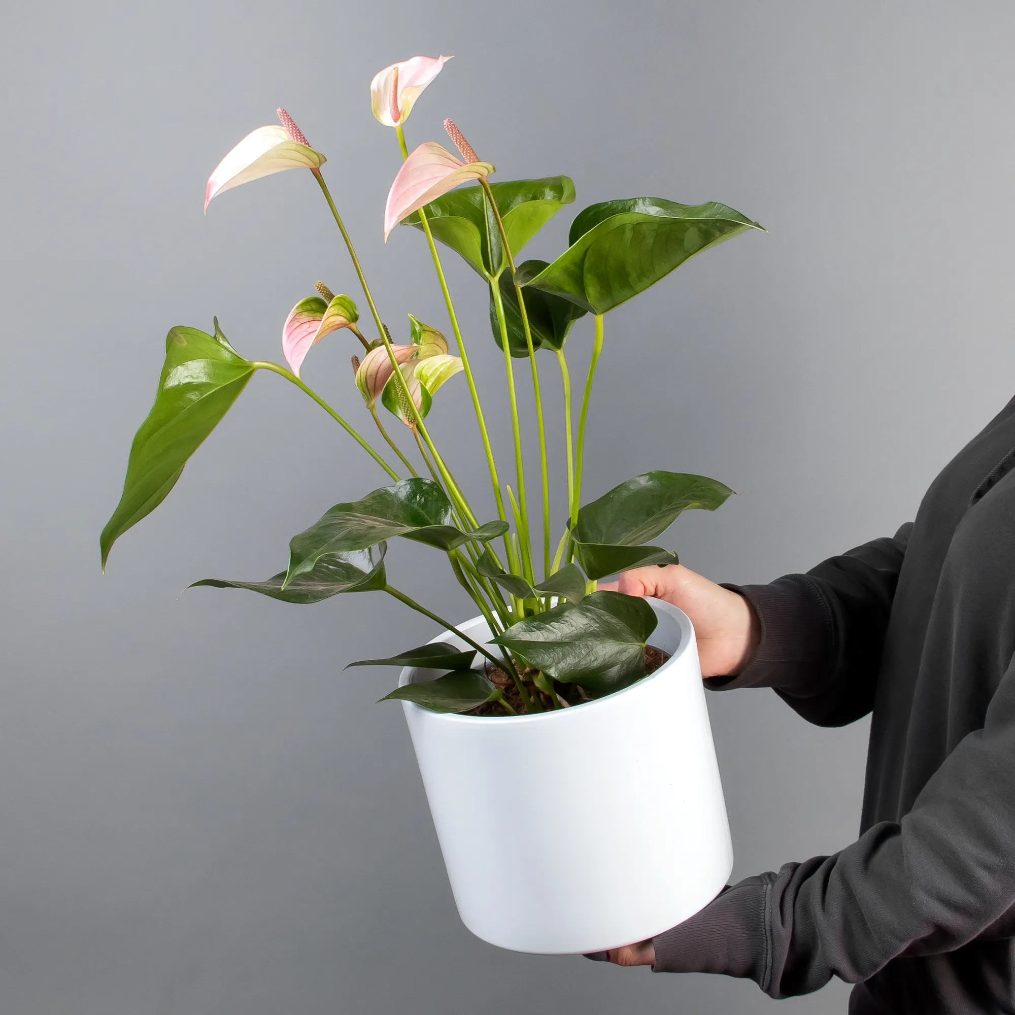 Как правило, растения доставляются в техническом пластиковом горшке от поставщика. Если в наименовании указано «в керамике/цинке», то в эту стоимость входит декоративное кашпо.