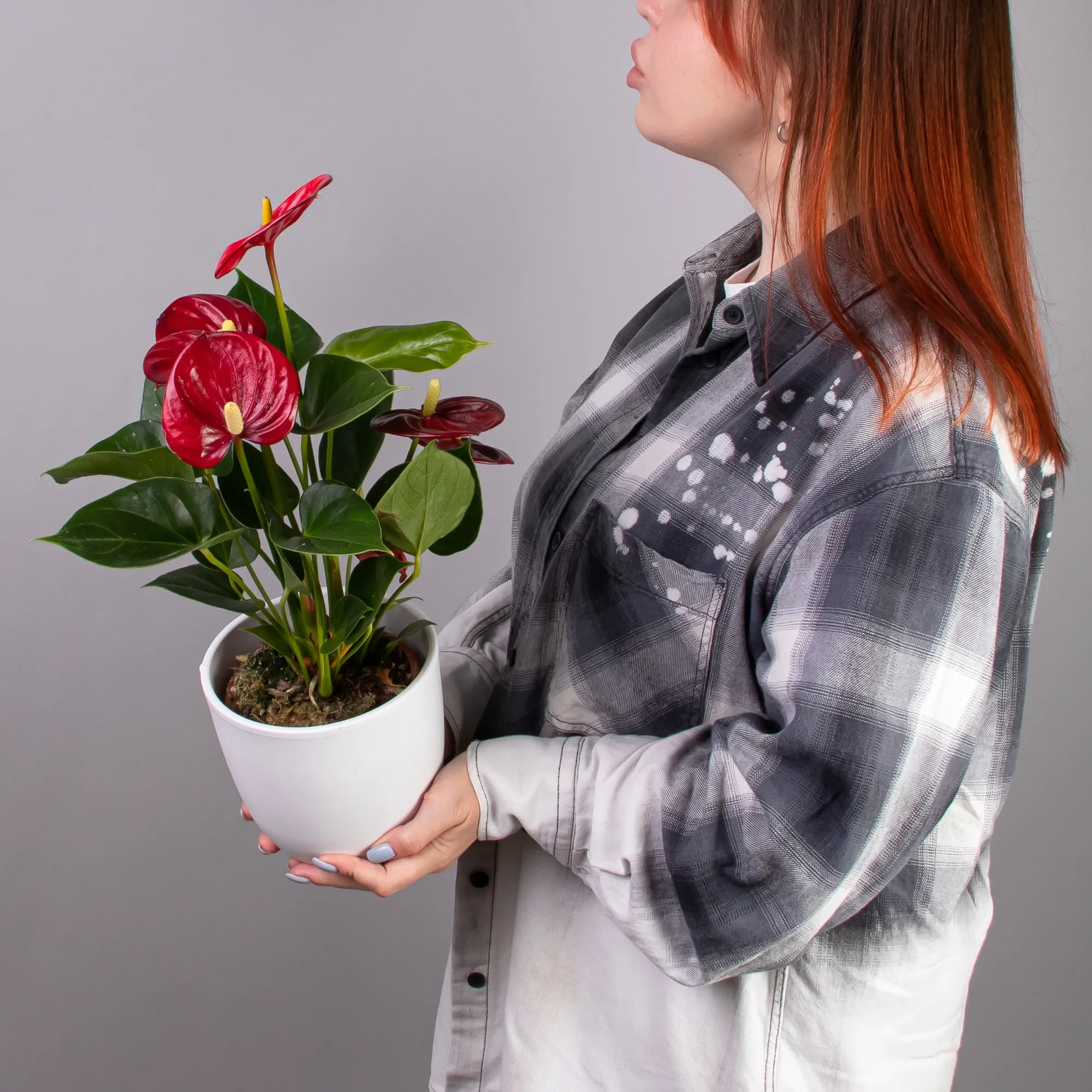 Как правило, растения доставляются в техническом пластиковом горшке от поставщика. Если в наименовании указано «в керамике/цинке», то в эту стоимость входит декоративное кашпо.