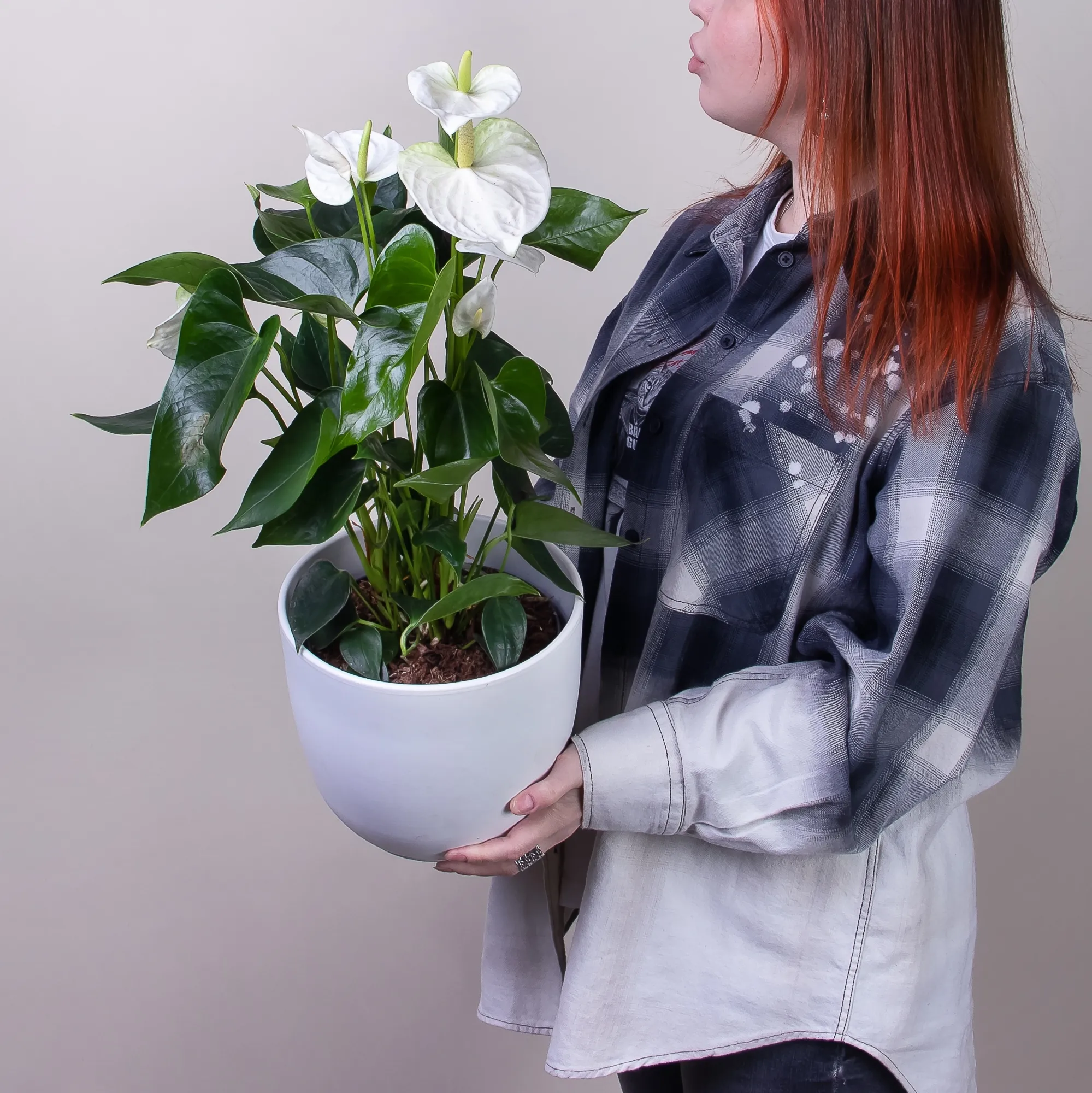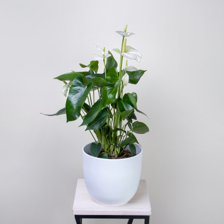 Как правило, растения доставляются в техническом пластиковом горшке от поставщика. Если в наименовании указано «в керамике/цинке», то в эту стоимость входит декоративное кашпо.