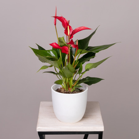 Как правило, растения доставляются в техническом пластиковом горшке от поставщика. Если в наименовании указано «в керамике/цинке», то в эту стоимость входит декоративное кашпо.