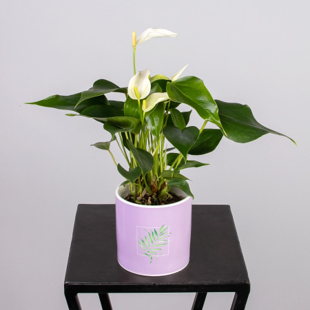 Как правило, растения доставляются в техническом пластиковом горшке от поставщика. Если в наименовании указано «в керамике/цинке», то в эту стоимость входит декоративное кашпо.