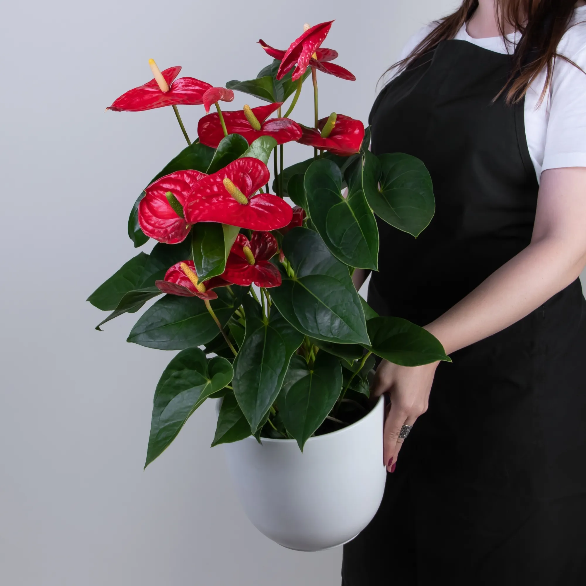 Как правило, растения доставляются в техническом пластиковом горшке от поставщика. Если в наименовании указано «в керамике/цинке», то в эту стоимость входит декоративное кашпо.