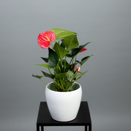 Как правило, растения доставляются в техническом пластиковом горшке от поставщика. Если в наименовании указано «в керамике/цинке», то в эту стоимость входит декоративное кашпо.