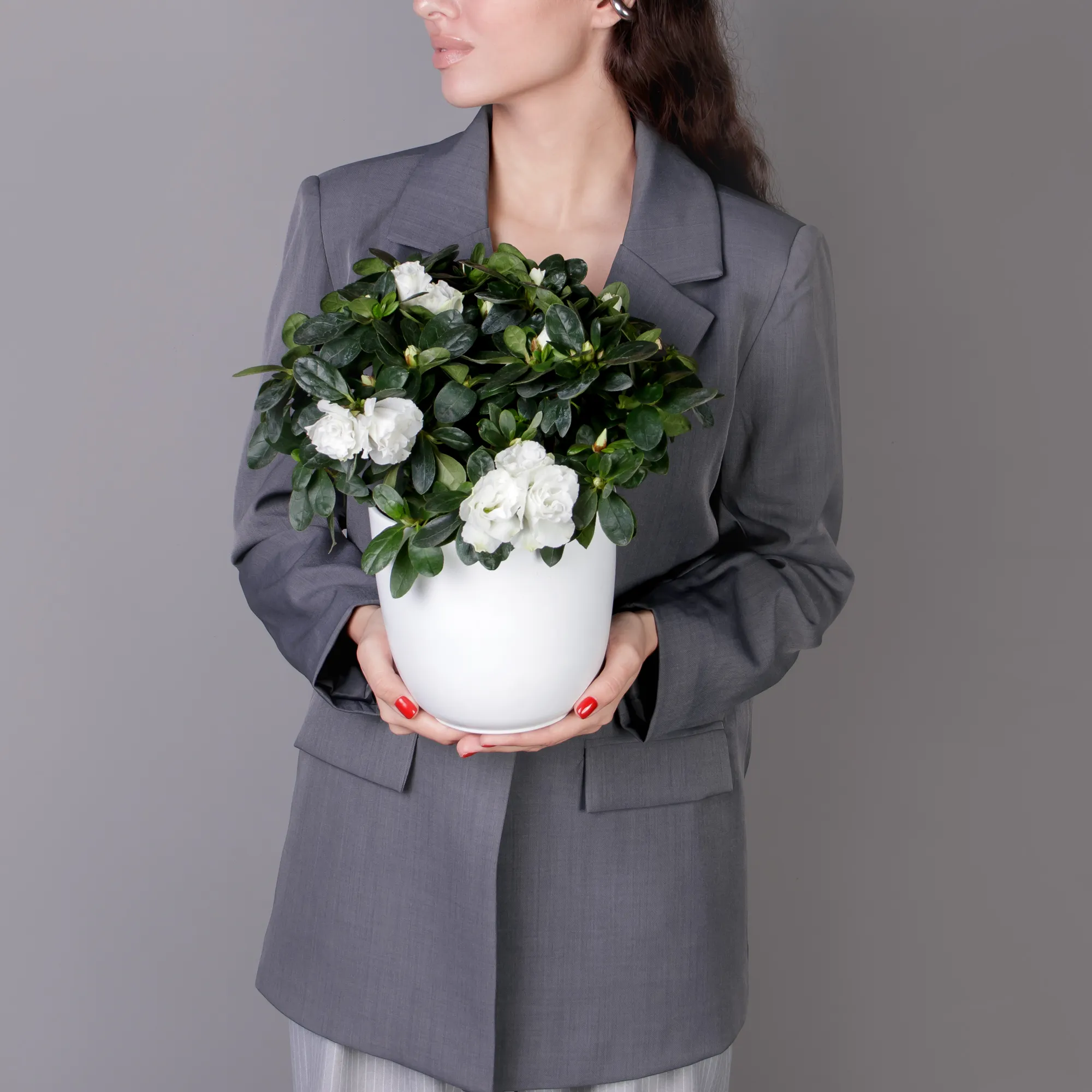 Как правило, растения доставляются в техническом пластиковом горшке от поставщика. Если в наименовании указано «в керамике/цинке», то в эту стоимость входит декоративное кашпо.