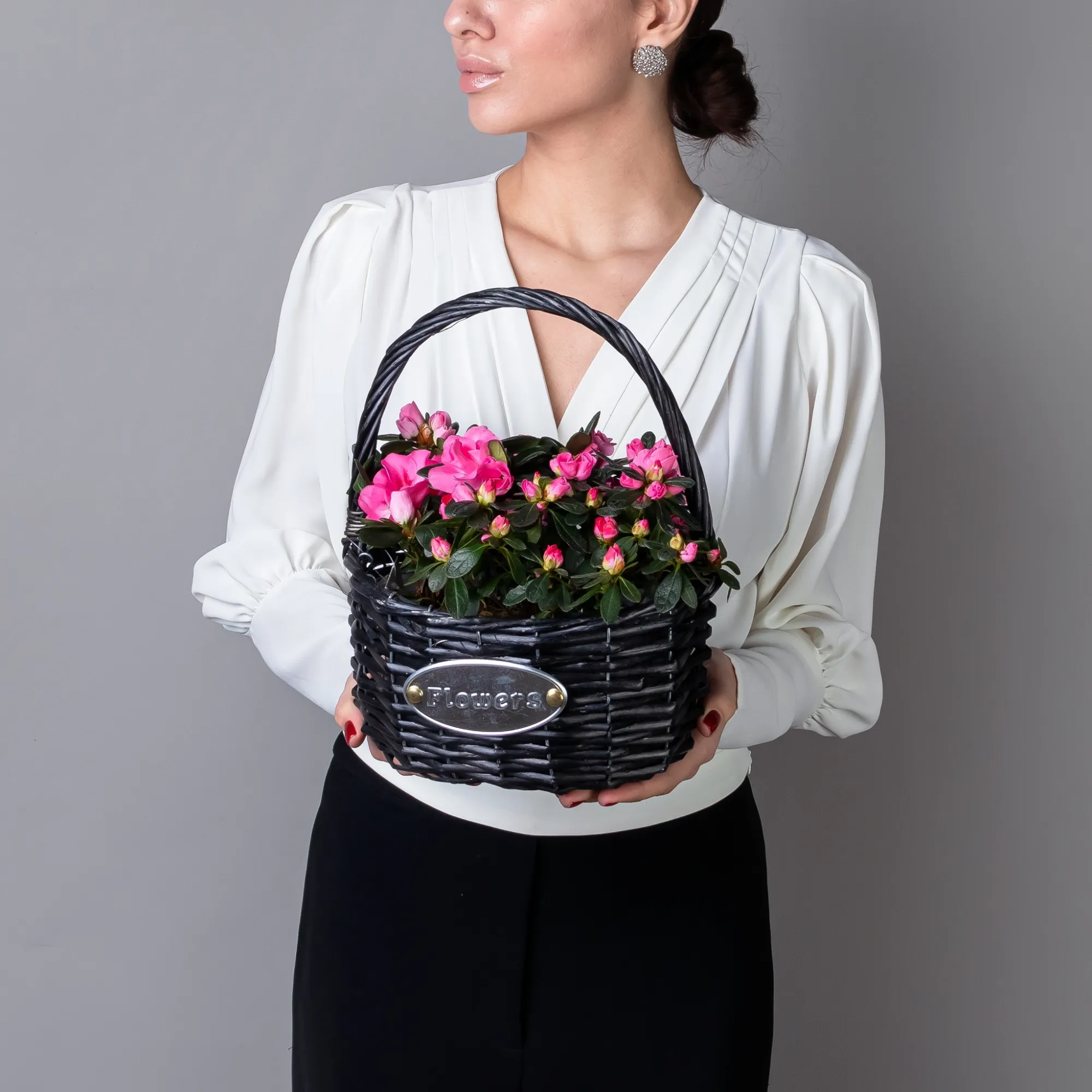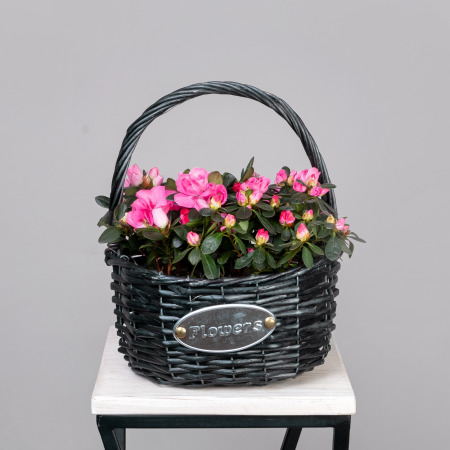 Азалия Индика Микс в Черной корзине