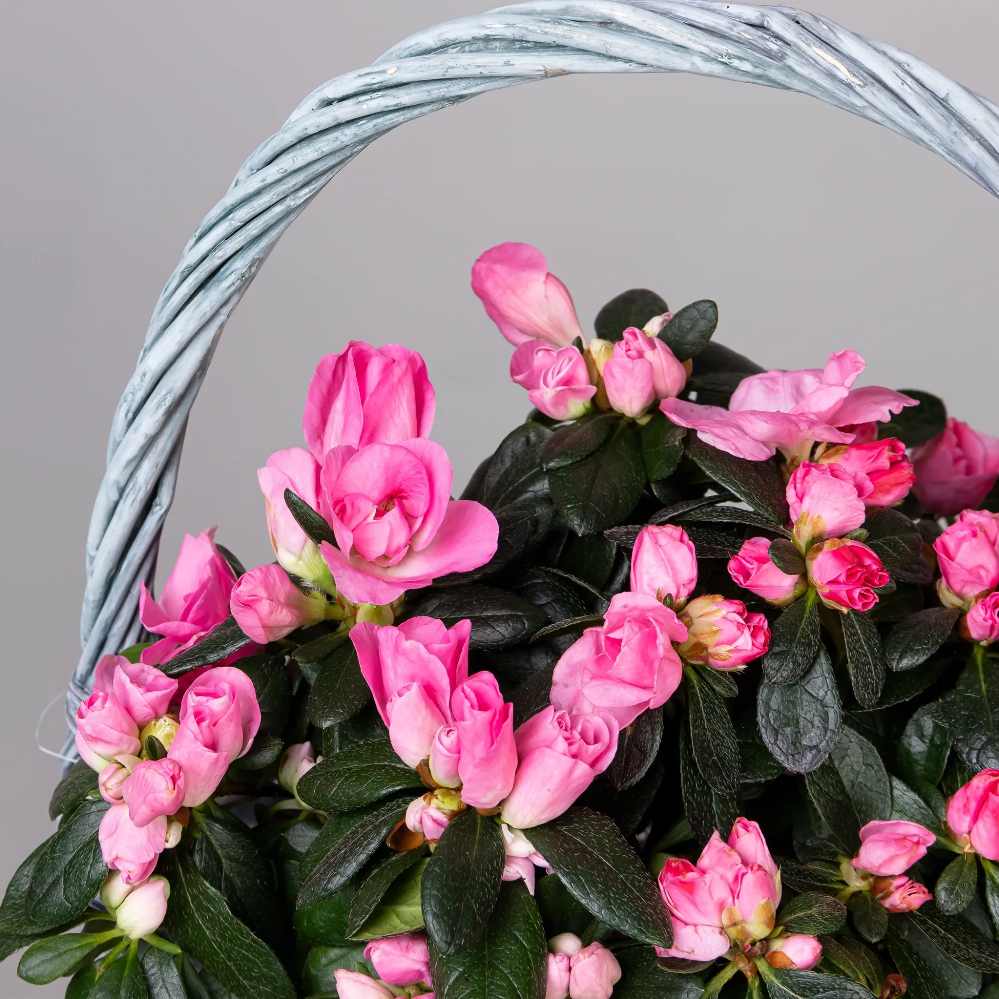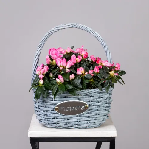 Азалия Малиновая в серой корзине