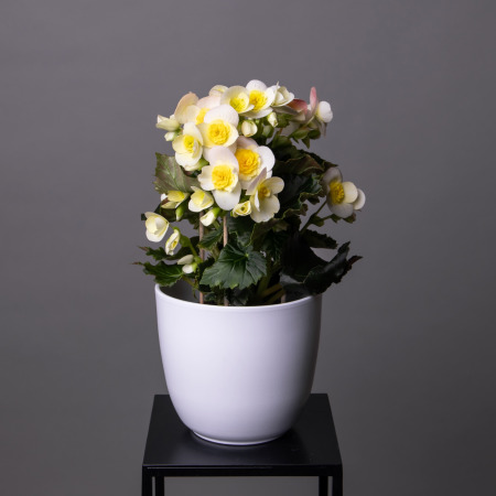 Как правило, растения доставляются в техническом пластиковом горшке от поставщика. Если в наименовании указано «в керамике/цинке», то в эту стоимость входит декоративное кашпо.