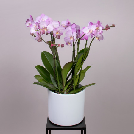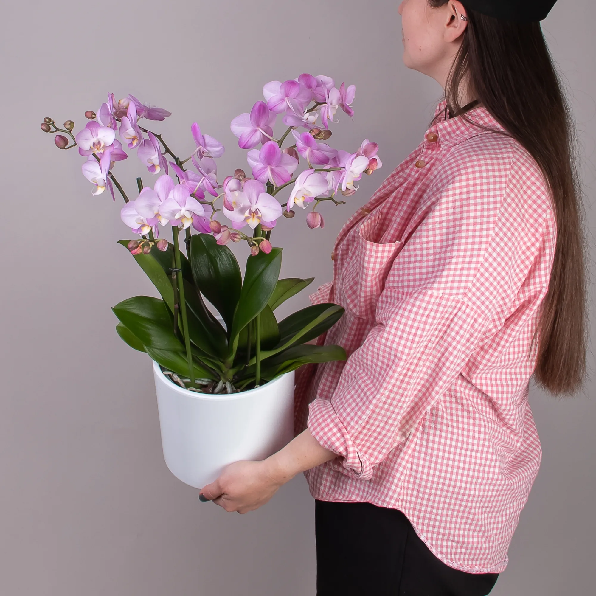 Как правило, растения доставляются в техническом пластиковом горшке от поставщика. Если в наименовании указано «в керамике/цинке», то в эту стоимость входит декоративное кашпо.