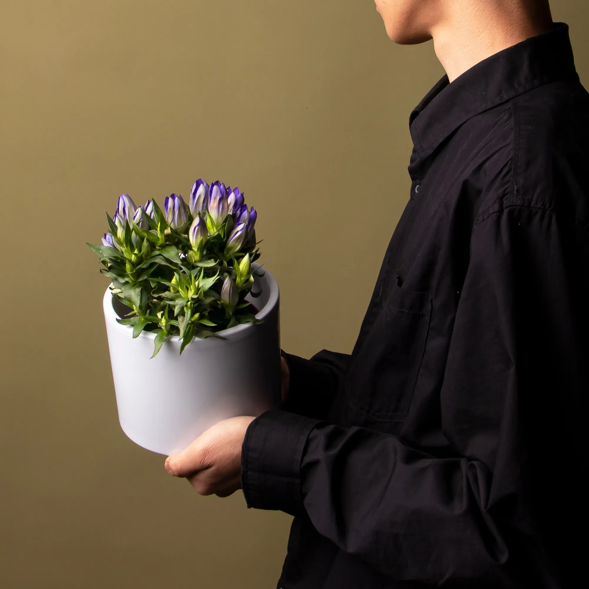Как правило, растения доставляются в техническом пластиковом горшке от поставщика. Если в наименовании указано «в керамике/цинке», то в эту стоимость входит декоративное кашпо.