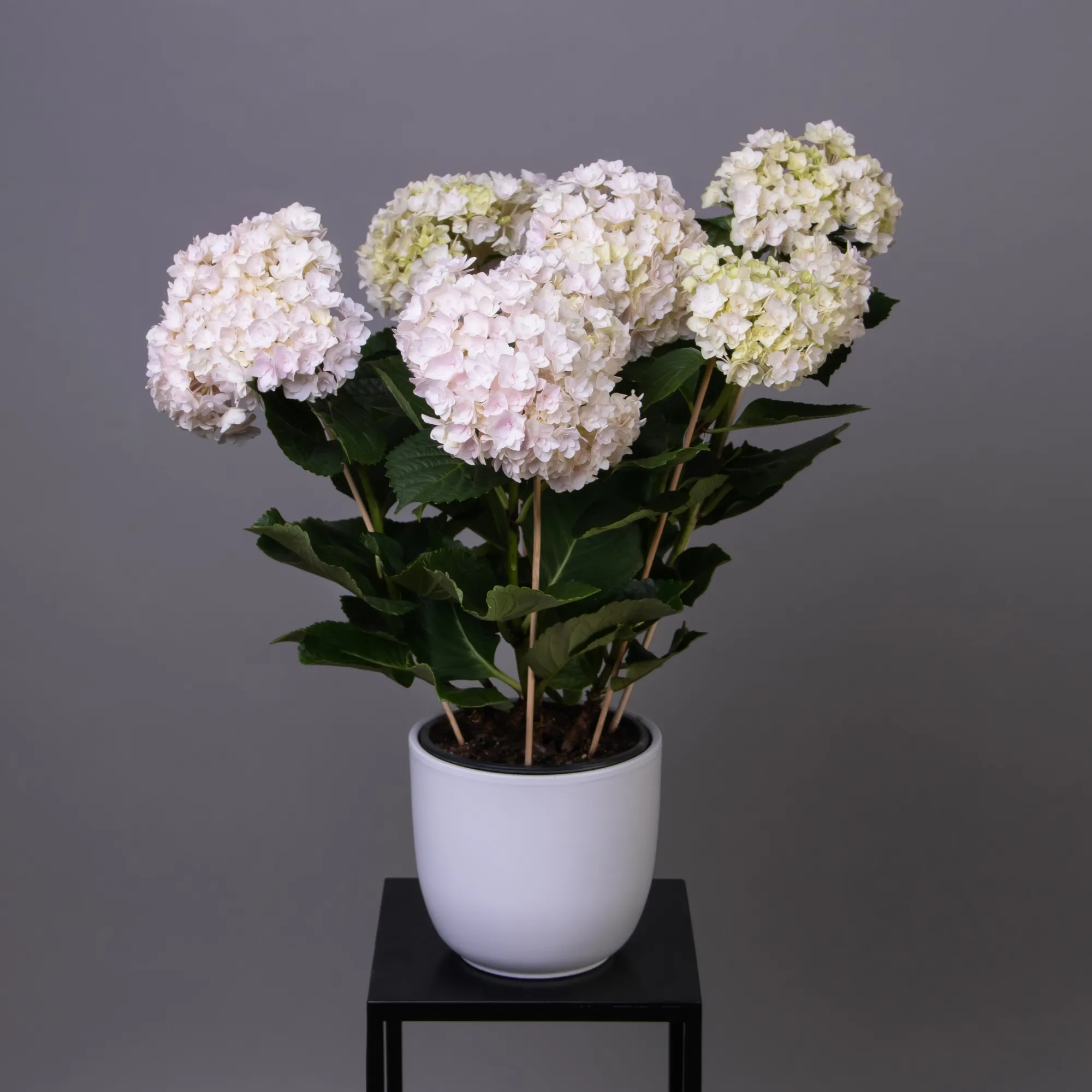 Как правило, растения доставляются в техническом пластиковом горшке от поставщика. Если в наименовании указано «в керамике/цинке», то в эту стоимость входит декоративное кашпо.