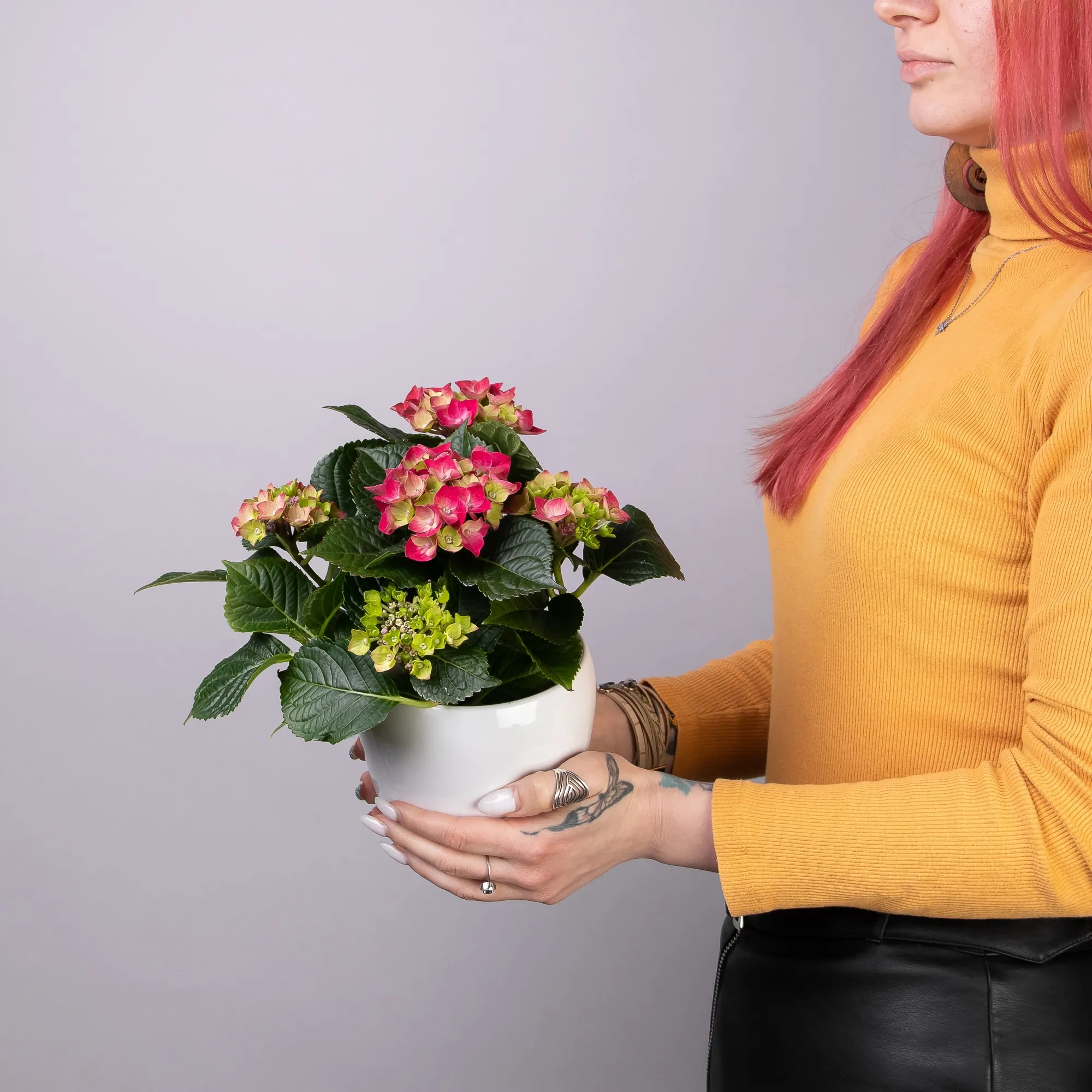 Как правило, растения доставляются в техническом пластиковом горшке от поставщика. Если в наименовании указано «в керамике/цинке», то в эту стоимость входит декоративное кашпо.