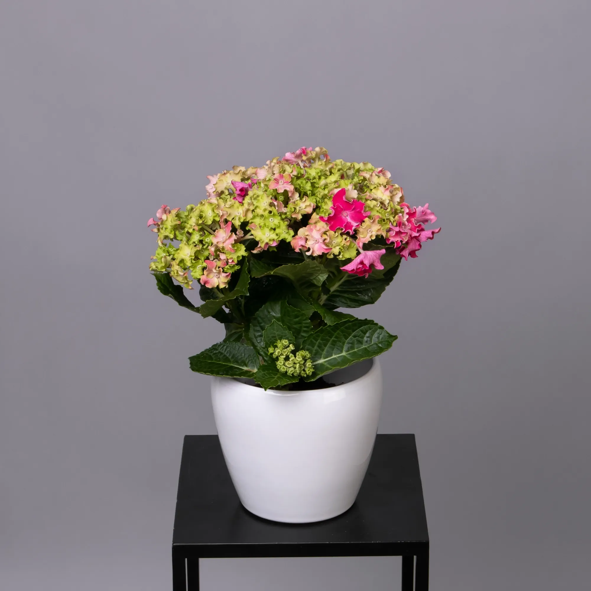 Как правило, растения доставляются в техническом пластиковом горшке от поставщика. Если в наименовании указано «в керамике/цинке», то в эту стоимость входит декоративное кашпо.