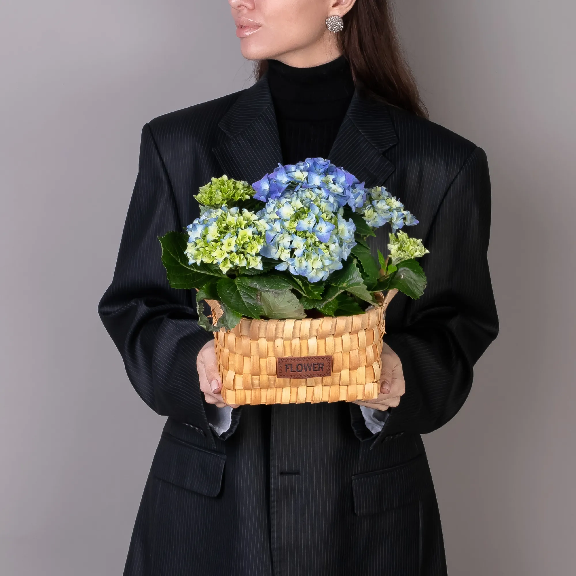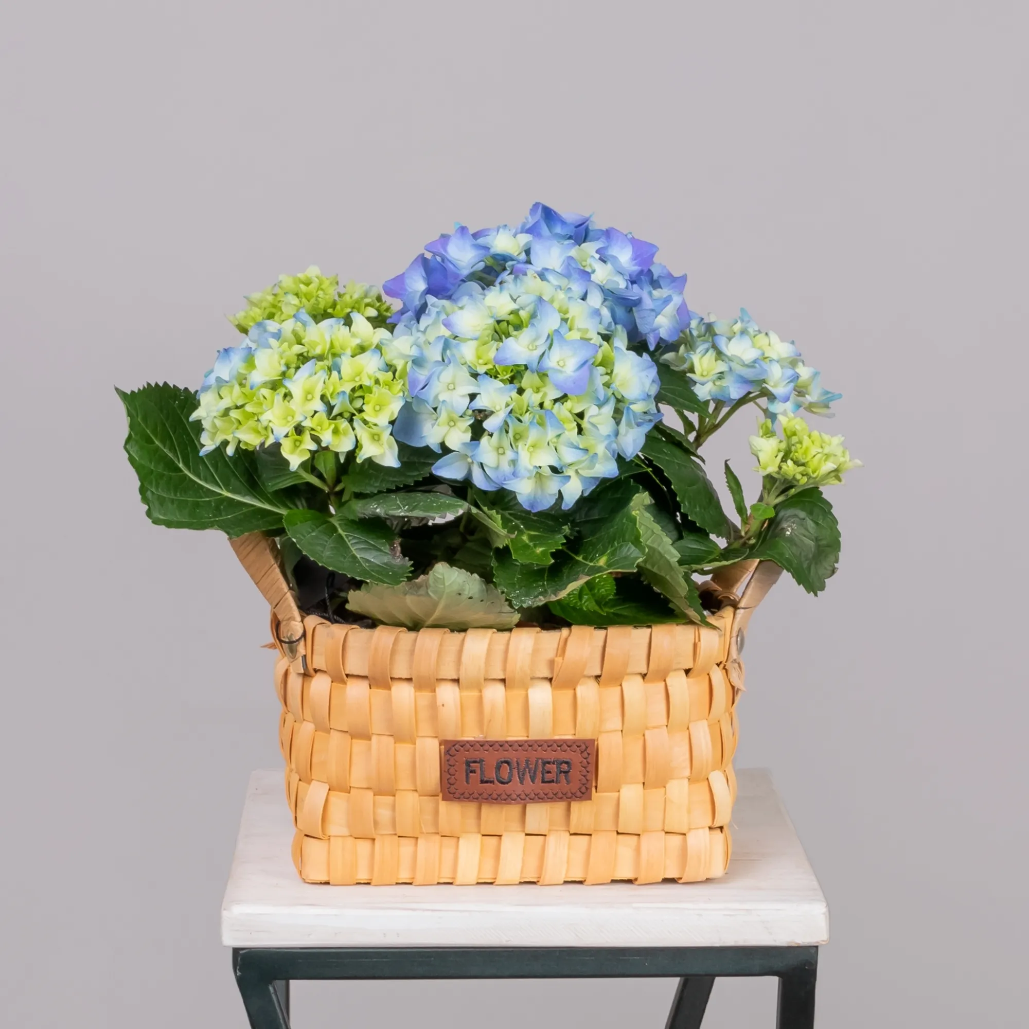 Гидрангия кустовая Синяя в Натуральной Корзине