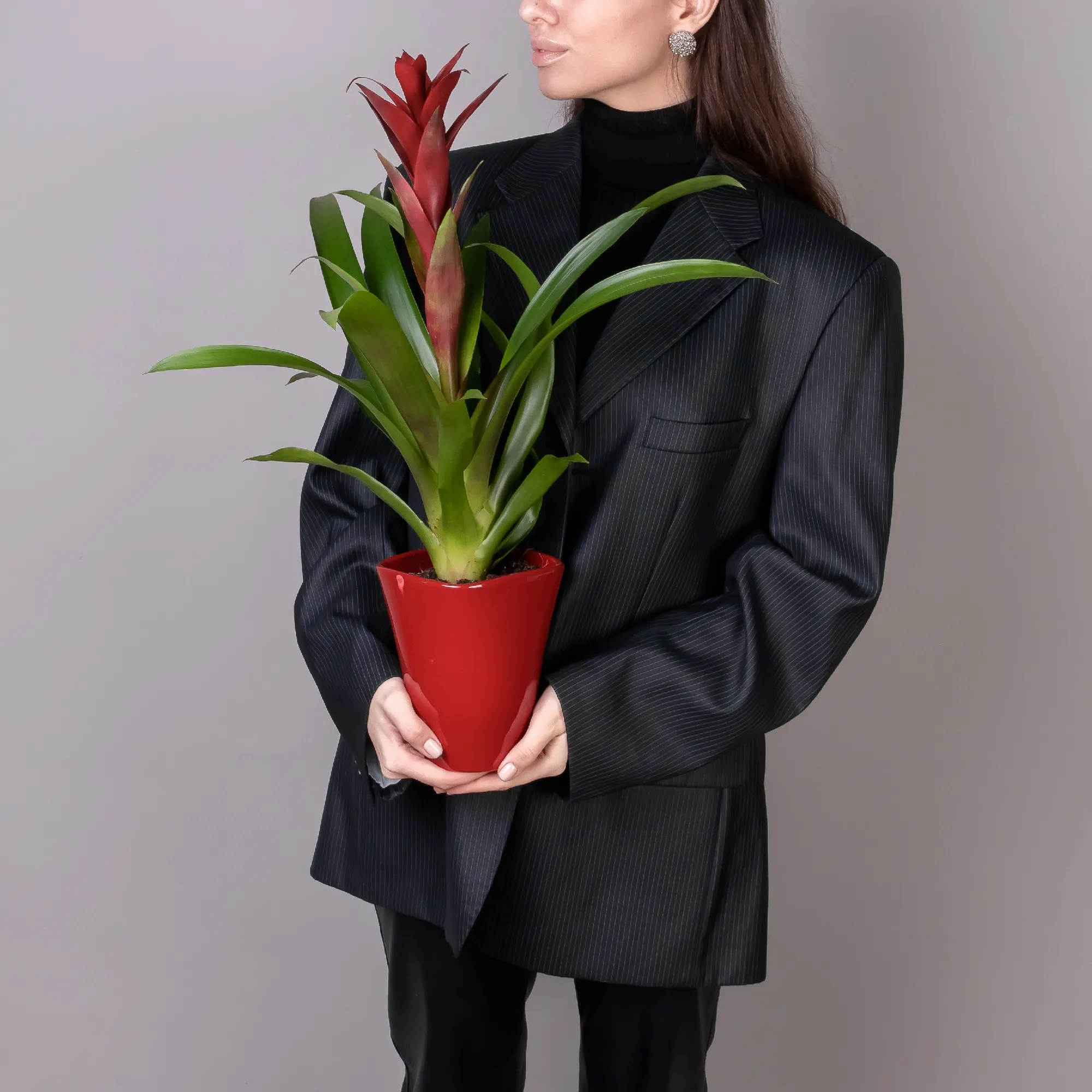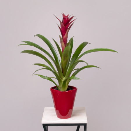 Гузмания полезное растение, оно эффективно увлажняет воздух, нормализует микроклимат в помещении и очищает воздух от вредных химических примесей.