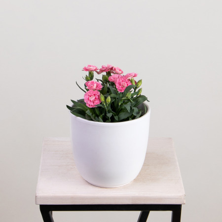 Как правило, растения доставляются в техническом пластиковом горшке от поставщика. Если в наименовании указано «в керамике/цинке», то в эту стоимость входит декоративное кашпо.