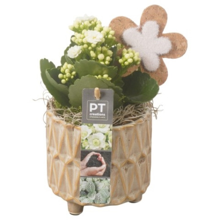 Как правило, растения доставляются в техническом пластиковом горшке от поставщика. Если в наименовании указано «в керамике/цинке», то в эту стоимость входит декоративное кашпо.