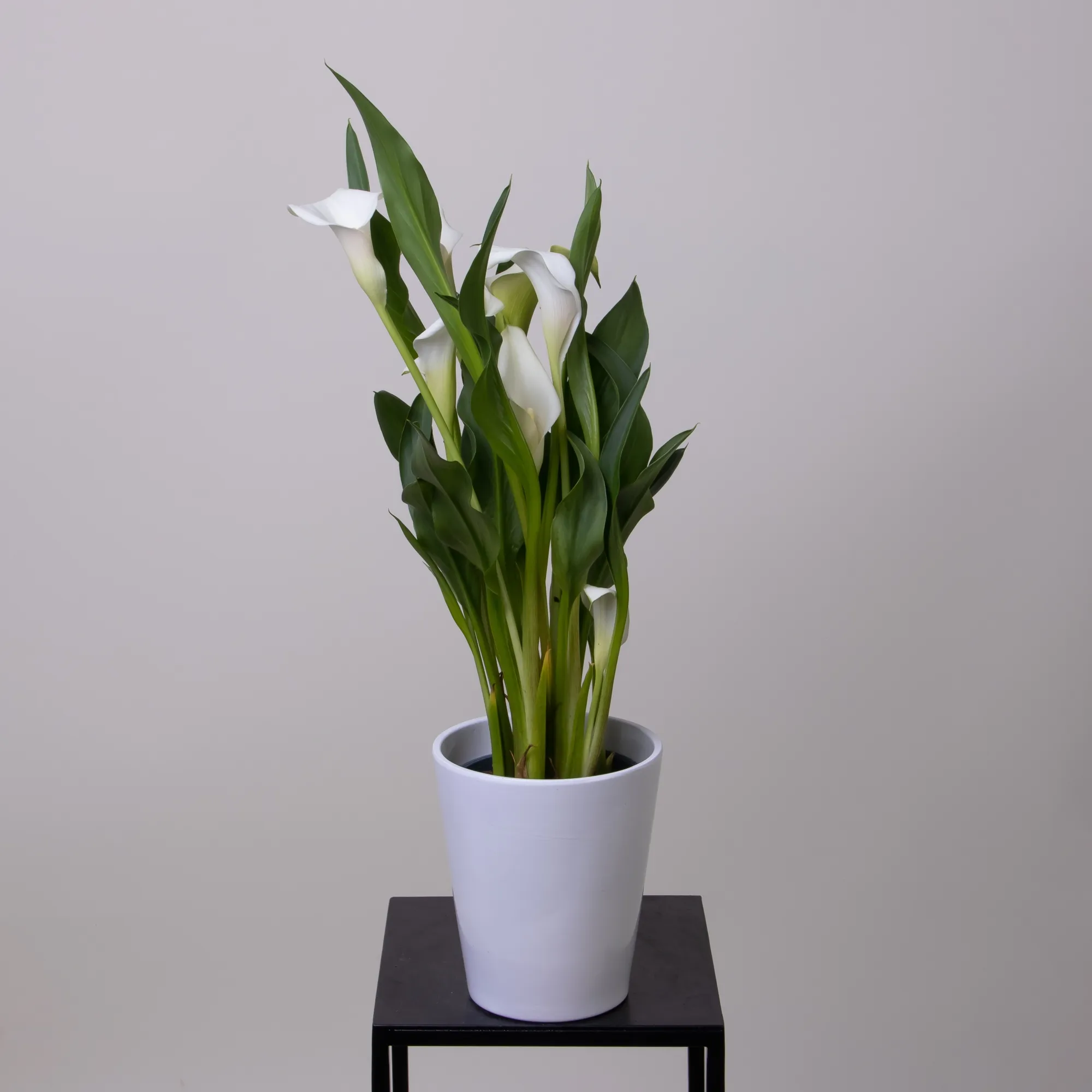 Как правило, растения доставляются в техническом пластиковом горшке от поставщика. Если в наименовании указано «в керамике/цинке», то в эту стоимость входит декоративное кашпо.
