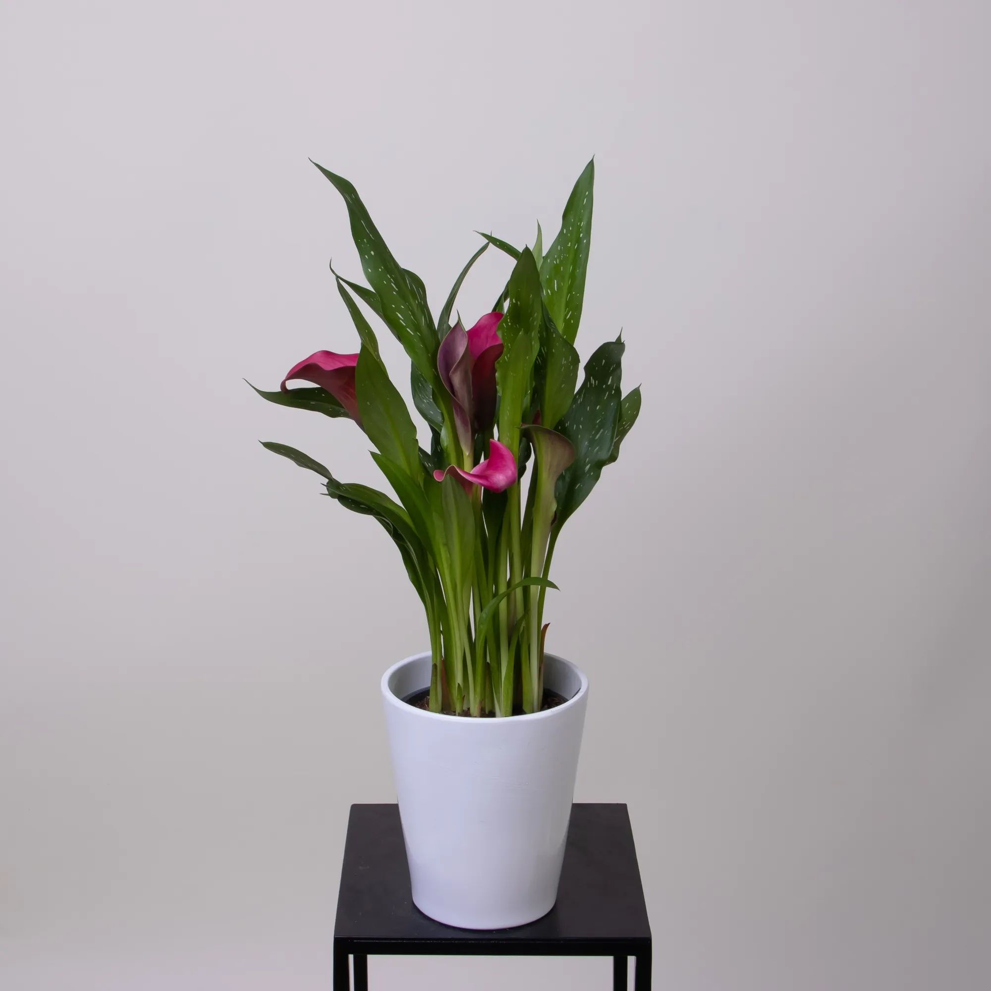 Как правило, растения доставляются в техническом пластиковом горшке от поставщика. Если в наименовании указано «в керамике/цинке», то в эту стоимость входит декоративное кашпо.