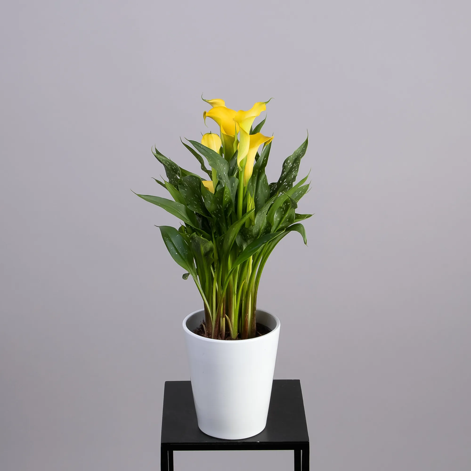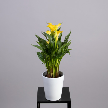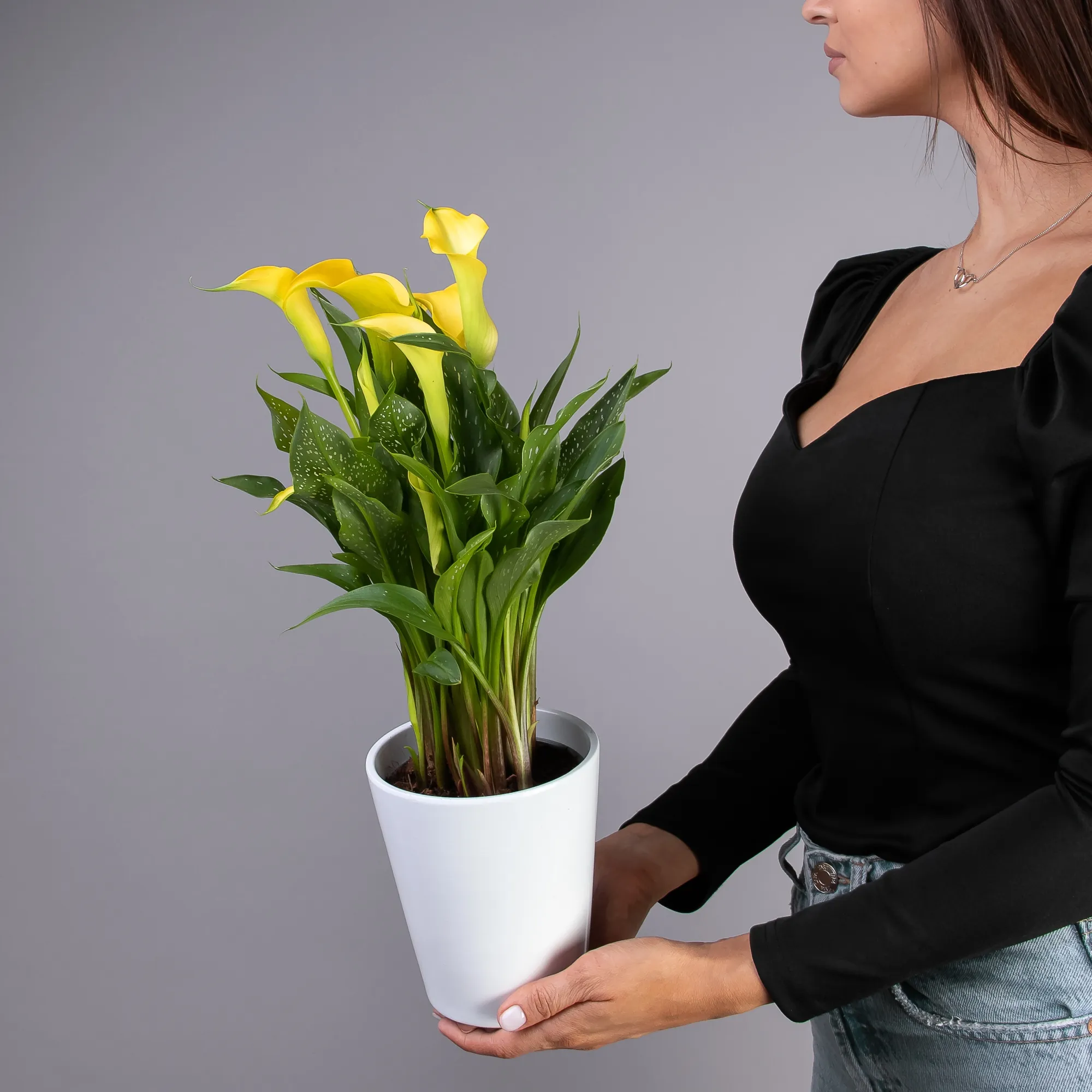 Как правило, растения доставляются в техническом пластиковом горшке от поставщика. Если в наименовании указано «в керамике/цинке», то в эту стоимость входит декоративное кашпо.
