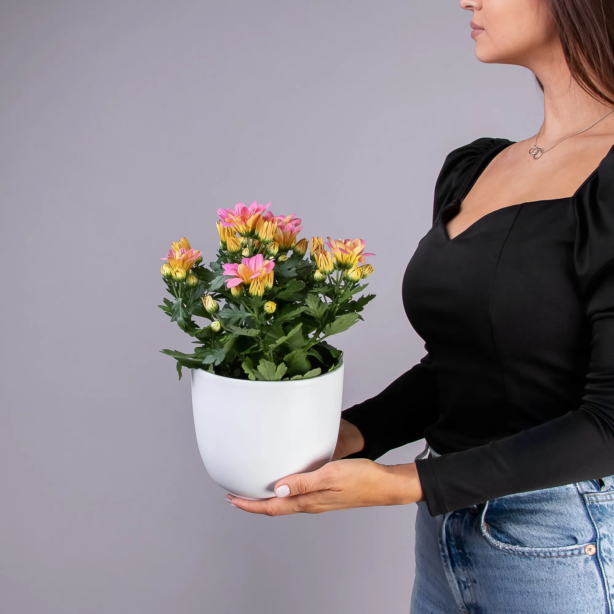 Как правило, растения доставляются в техническом пластиковом горшке от поставщика. Если в наименовании указано «в керамике/цинке», то в эту стоимость входит декоративное кашпо.