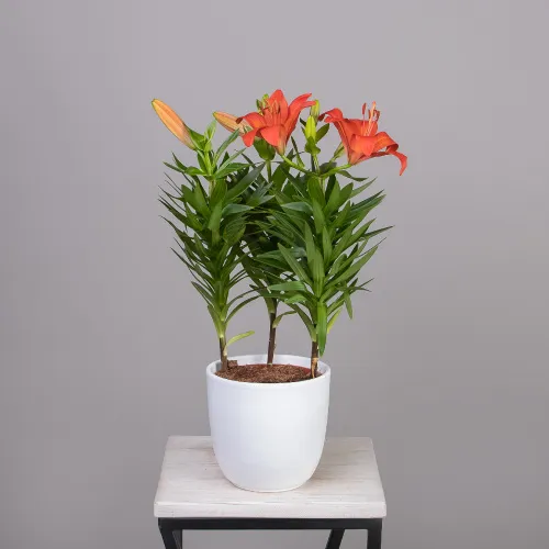 Как правило, растения доставляются в техническом пластиковом горшке от поставщика. Если в наименовании указано «в керамике/цинке», то в эту стоимость входит декоративное кашпо.