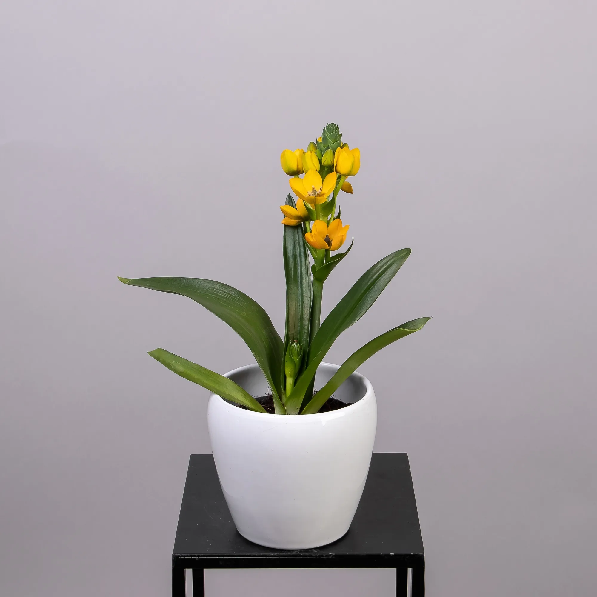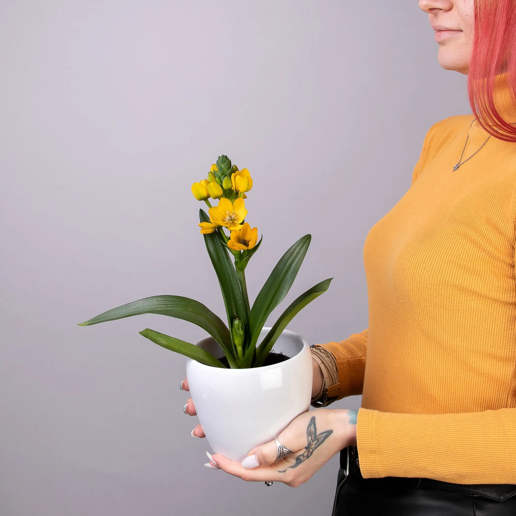 Как правило, растения доставляются в техническом пластиковом горшке от поставщика. Если в наименовании указано «в керамике/цинке», то в эту стоимость входит декоративное кашпо.